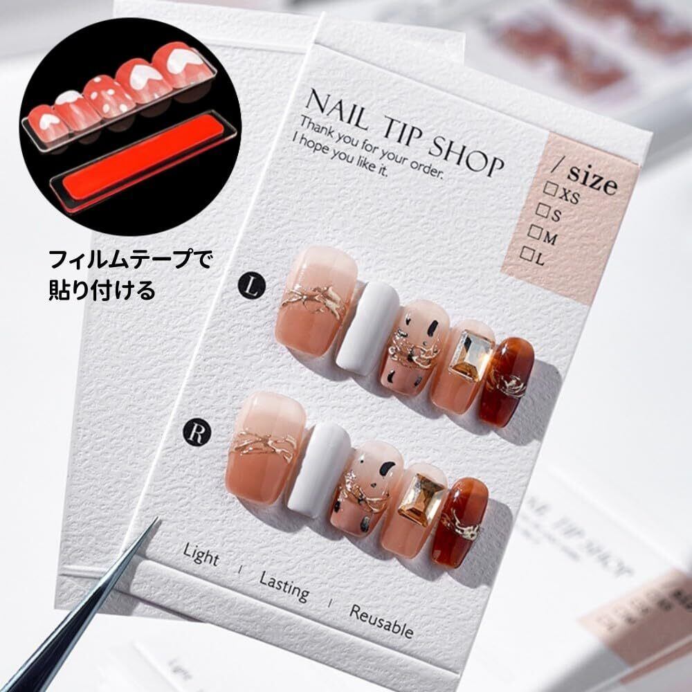 【展示カードとフィルムテープ付き】:このセットには展示カードとフィルムテープ付きます。ネイルチップを転がったり擦れたりすることないため、フィルムテープで収納ボックスに貼り付ける必要があります。もちろん、展示カードに貼り付けることもおすすめで、左手と右手を区別しやすくなります。