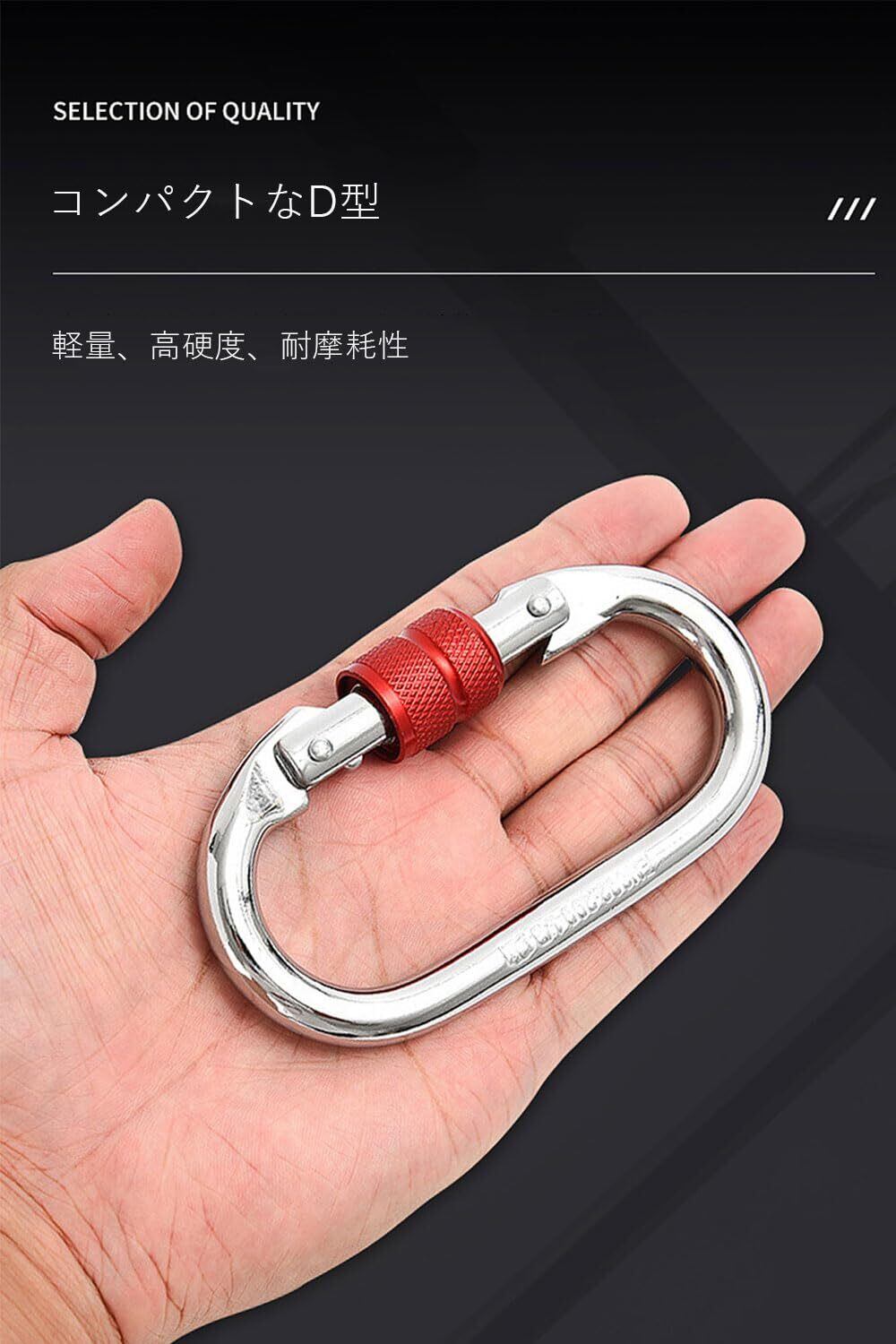 カラビナ 耐荷重25KN(2500kg) ロッキングカラビナ Dリング スリング キーホルダー クライミングカラビナ 破断強度 脱落防止 多機能 超軽量 小型 ロック 牽引用 荷物のフック 犬のリード用 救援 トレーニング アウトドア キャンプ ハイキング