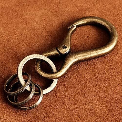 [BRASS STORE] アンティーク二重リング付き カラビナ キーホルダー (ブロンズ大) キーリング メンズ レディース アンティーク ゴールド ヴィンテージ