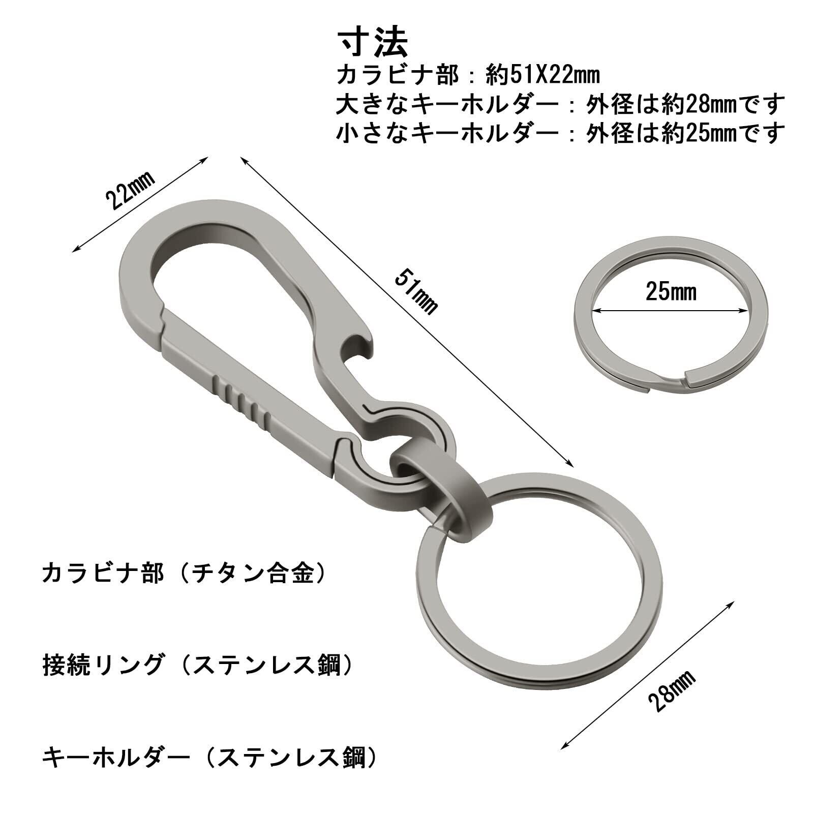 Wordlcui チタン カラビナ キーホルダー キーリング付き おしゃれ 金具 軽量 便利 シンプル キーチェーンホルダー 車 家 鍵 バッグ小物 脱落防止 紛失防止 取付簡単 頑丈 プレゼント