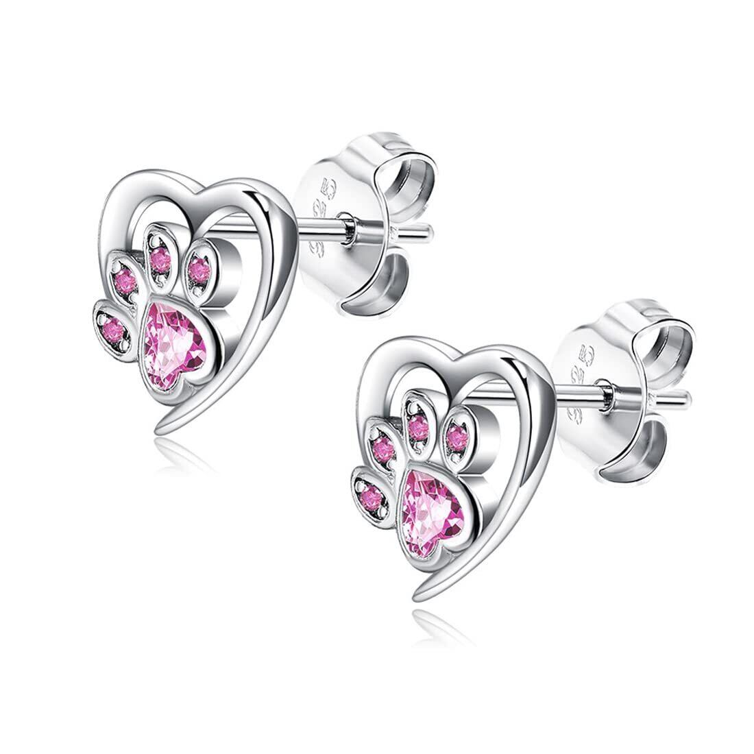 Rockyu ピアス レディース シルバー925 ジルコニア ピンク ブルー ホワイト 肉球ピアス 心形 ネコ足跡 ピンク宝石 デート 記念日 パーティー ファッション アクセサリー