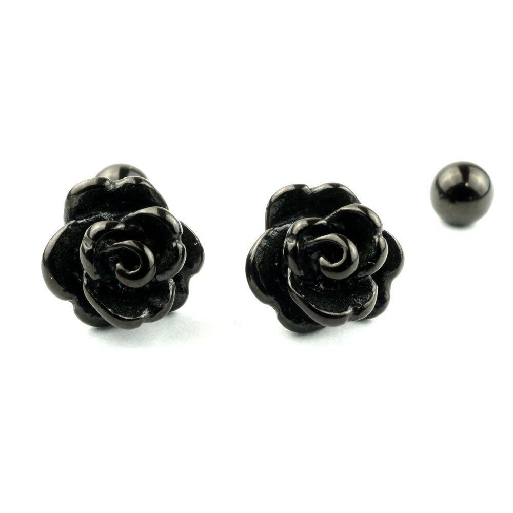 [ATK21] 両耳用(2個セット) ローズ 薔薇 スタッド ピアス メンズ レディース ステンレス ブラック シルバー アクセサリー (ブラック)