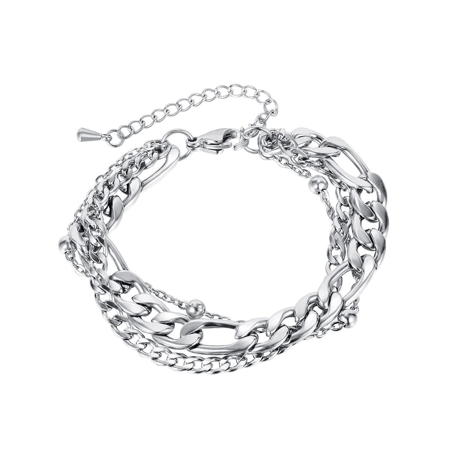 【Rockyu ブレスレット】三連チェーン ブレスレット おしゃれ ジュエリー 調整可能 材料:ステンレス 寸法: 周長 160mm+50mm 重量: 17G