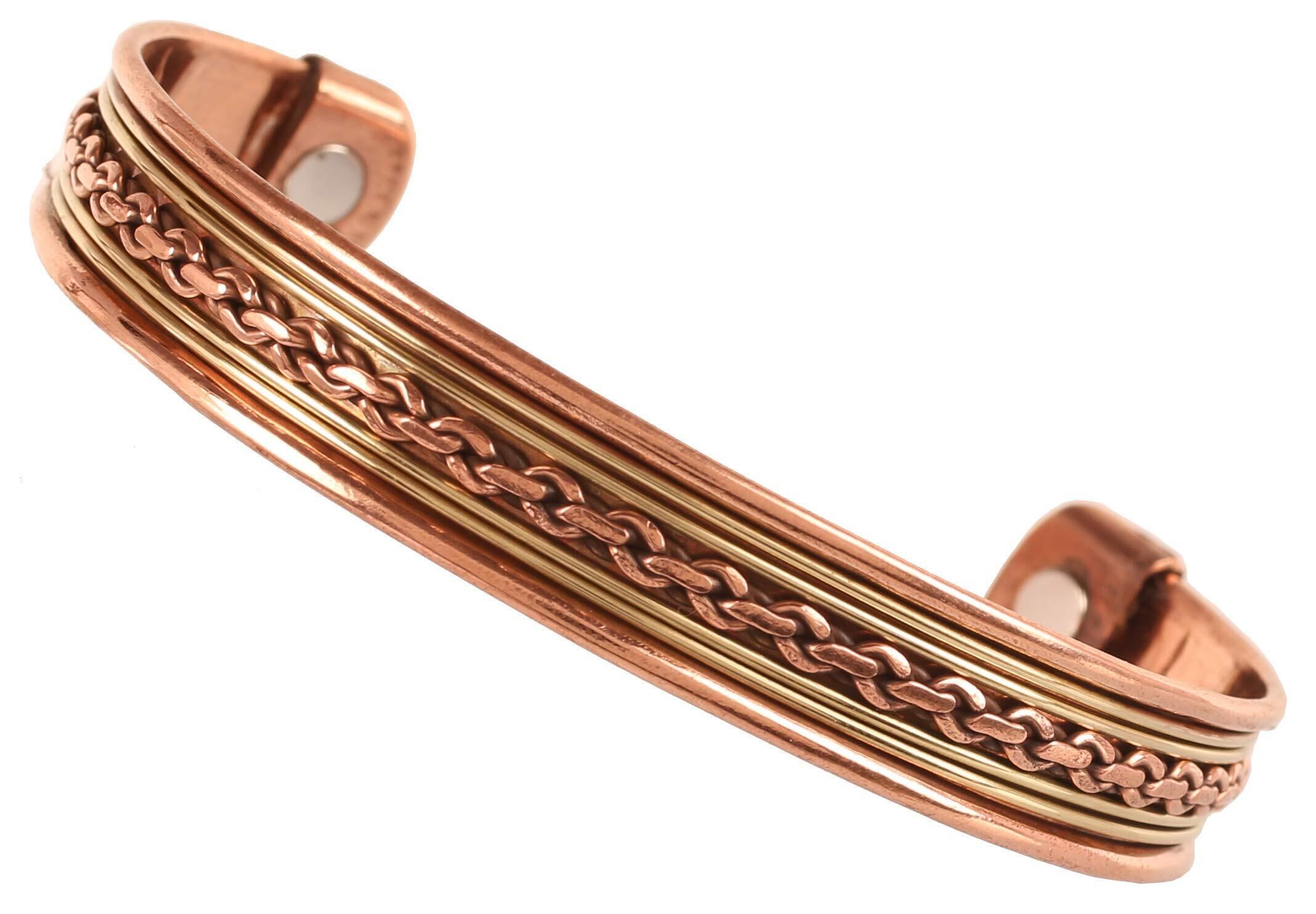 美しく手作りされたインドのチェーンパターン磁気ヒーリング開閉可能なフリーサイズの銅ベースブレスレット2トーン。