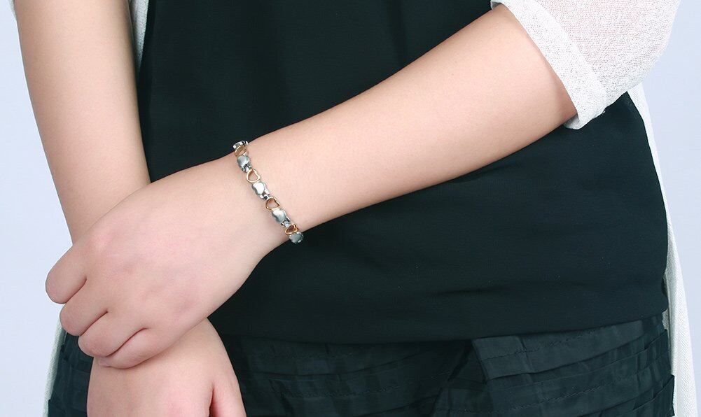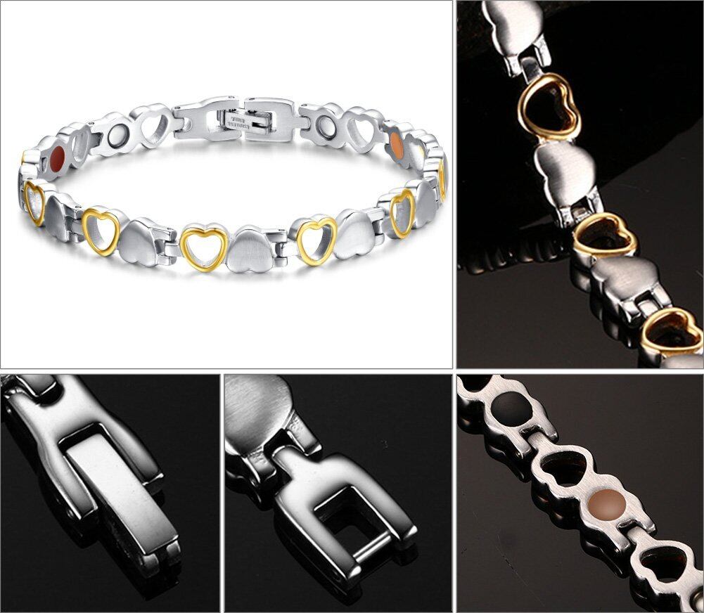 【優れたハートデザイン】シンプルで着用しやすいデザイン、派手過ぎず、地味過ぎない、ちょうど良い存在感が魅力のステンレス磁気ブレスレットです。普段使いでもフォーマルでも大活躍する、人気のレディースゲルマニウムブレスレットです。