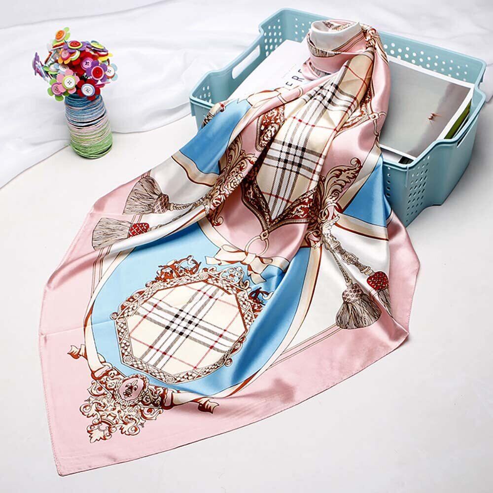 スカーフ レディース 90×90cm シルク 薄手 髪飾り バッグ飾り 持ち手 小物 アクセサリー 通勤 日焼け止めショール パーティー用 (ピンク)