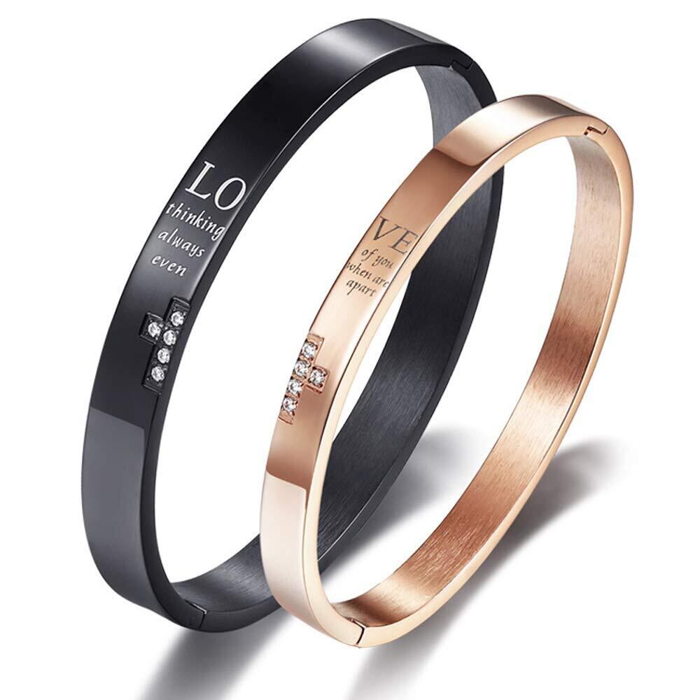 ファッション クロス ペア メッセージ ジルコニア 入り サージカルステンレス ペア バングル カップル ブレスレット レディース メンズ