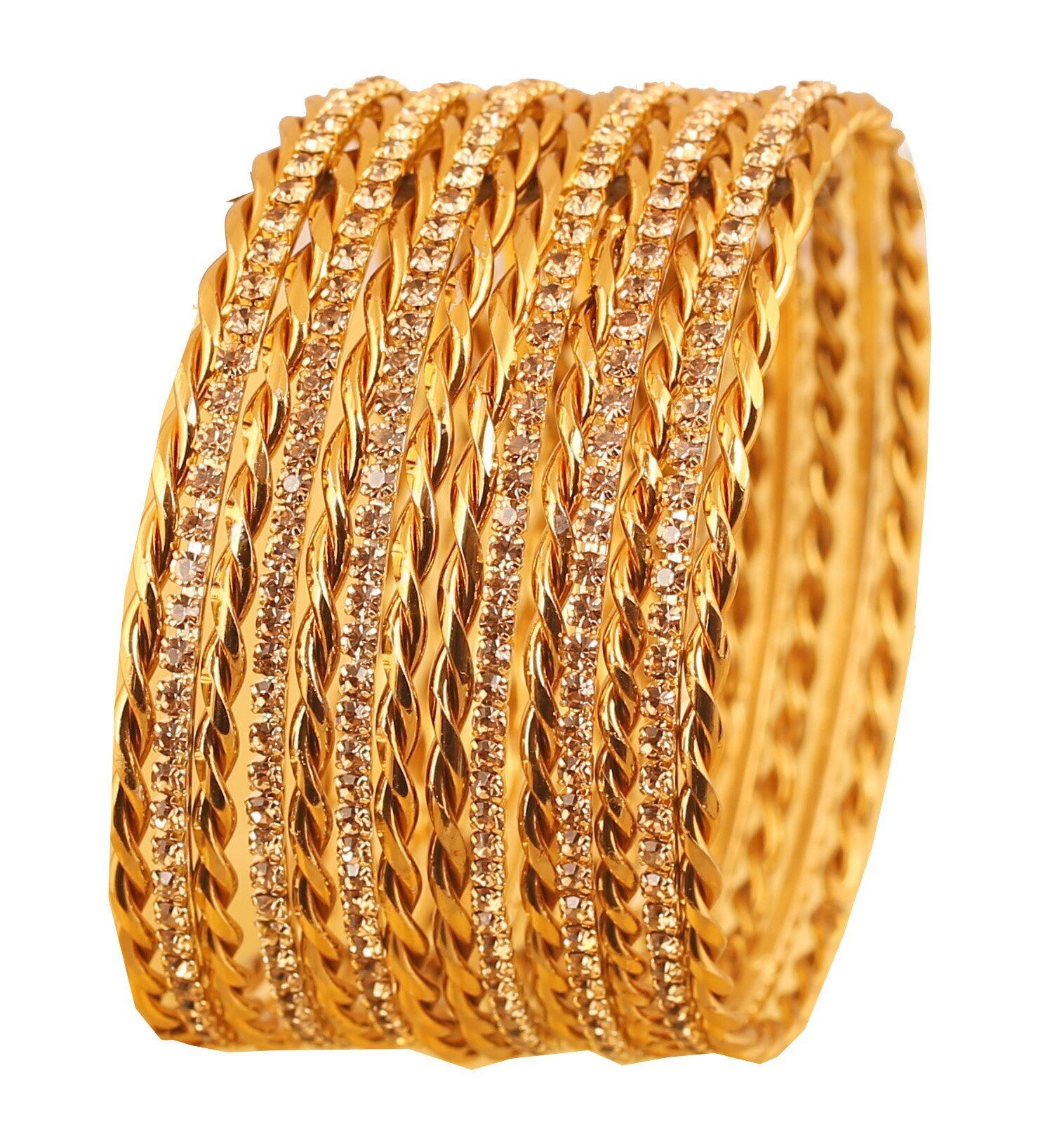 Touchstone 「ゴールデンバングルコレクション」 インドのボリウッド 美しく編まれたテーマ イエローラインストーンデザイナージュエリーバングルブレスレット14個セット。 女性用アンティークゴールドトーン。 サイズ:S。 インドサイズ2-4。 内径2.25インチまたは2.25インチ。 失望を避けるため、ご注文前に古いバングルをご確認ください。