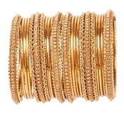 合金メタル、独自のイエローカラーのシトリンラインストーン、伝統的なインドのシングルラインチャーミングな外観のバングルブレスレット。アンティークゴールドトーン。 12個セット。