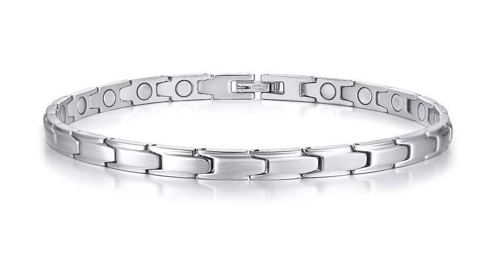 Rockyu ブランド 人気ジュエリー 磁気アンクレット レディース シルバー ステンレス ゲルマニウム 静電気除去 磁気 レディースアンクレット 女性用 磁気療法用アンクレット 足や足首の関節炎の痛みや炎症の緩和
