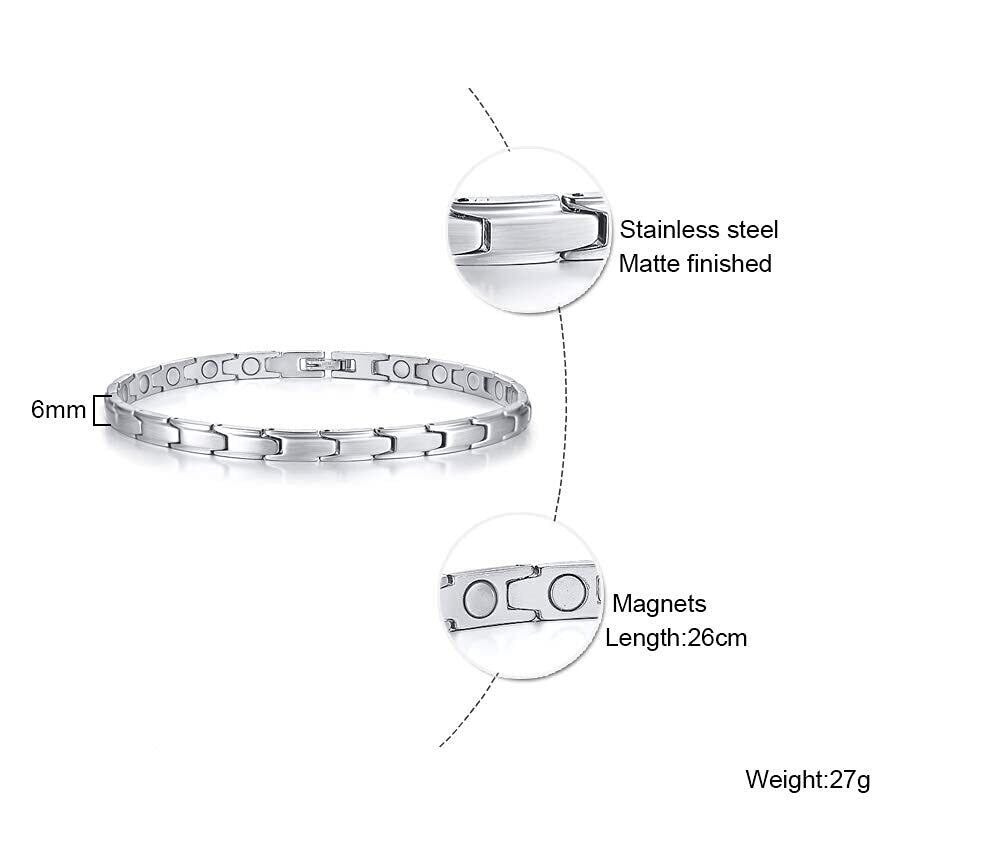 【Rockyu ブレスレット】 レディース磁気アンクレット 6㎜ 。磁気ブレスレットはエレガントでおしゃれ、そして何よりも効き目があります。 素材:ステンレス鋼 長さ:26 cm 幅:6 mm