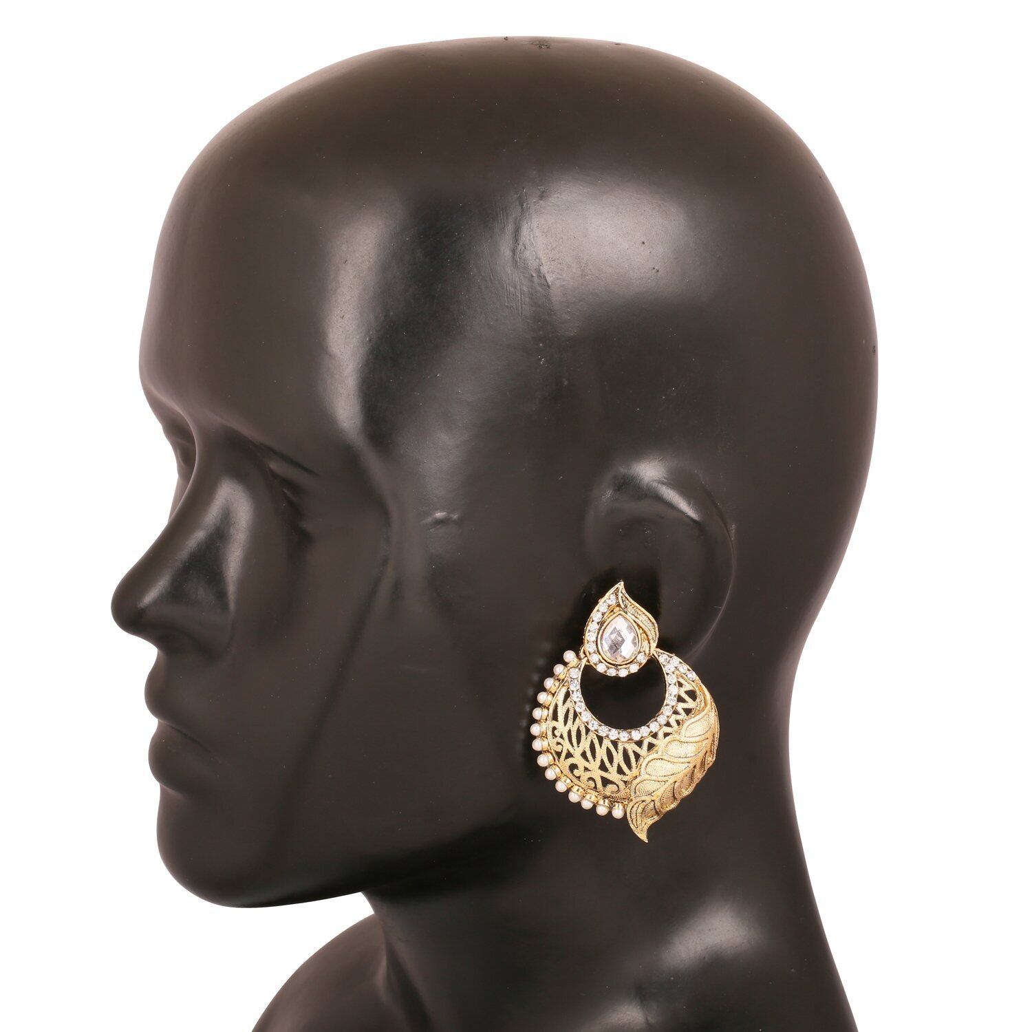Touchstone Indian Bollywood Crystals Faux Pearls whittled and baliデザイナーイヤリングアンティークゴールドトーンのトーンのイヤリング:イヤリング重量(シングル)12 GM。イヤリングの長さ2インチ。イヤリング幅1.50インチ。これは、アンティークジュエリーの外観を再現するための特別なダークゴールドメッキです。