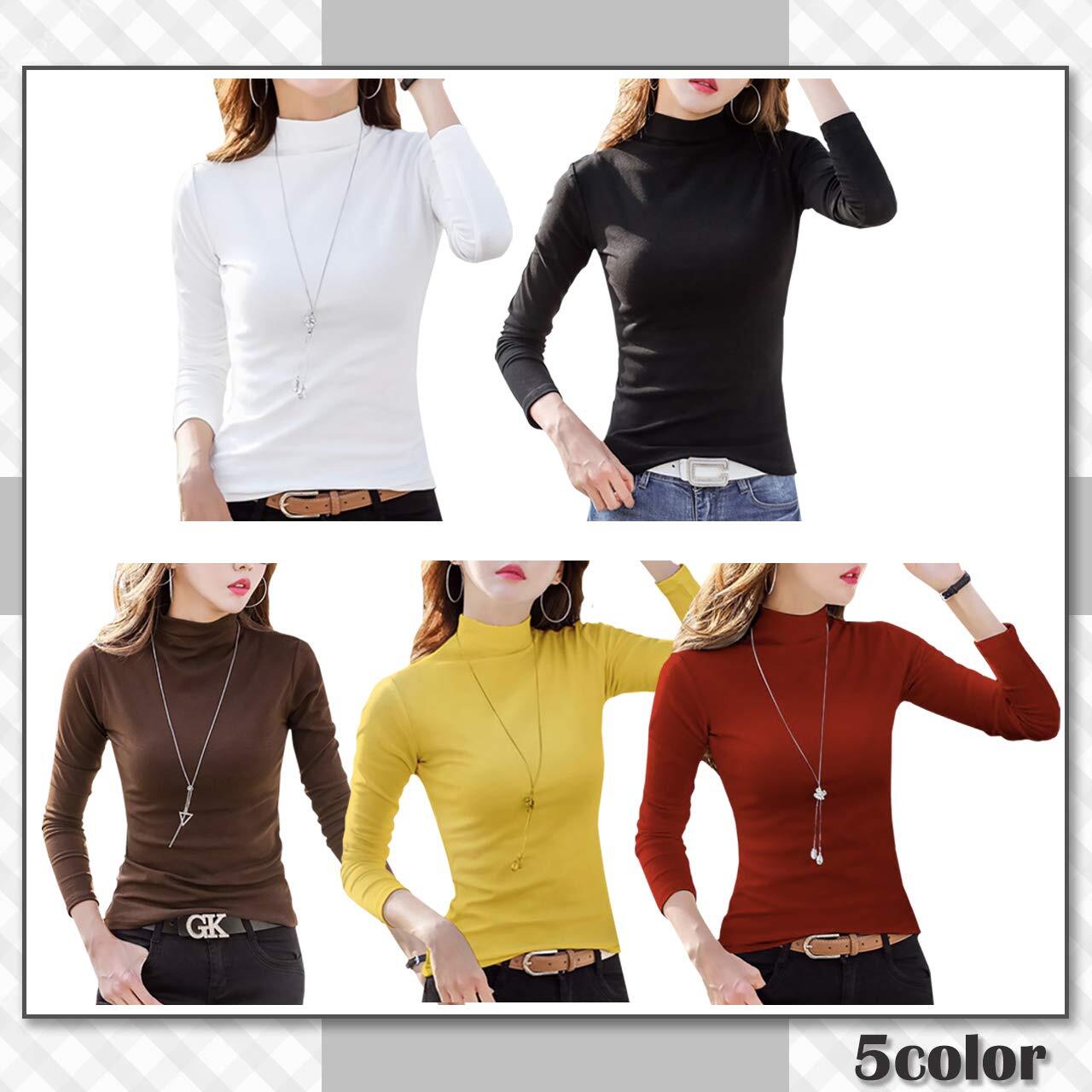 秋 冬 定番の ハイネック 長袖 Tシャツ! シンプルでコーデしやすい レディース インナー カットソー