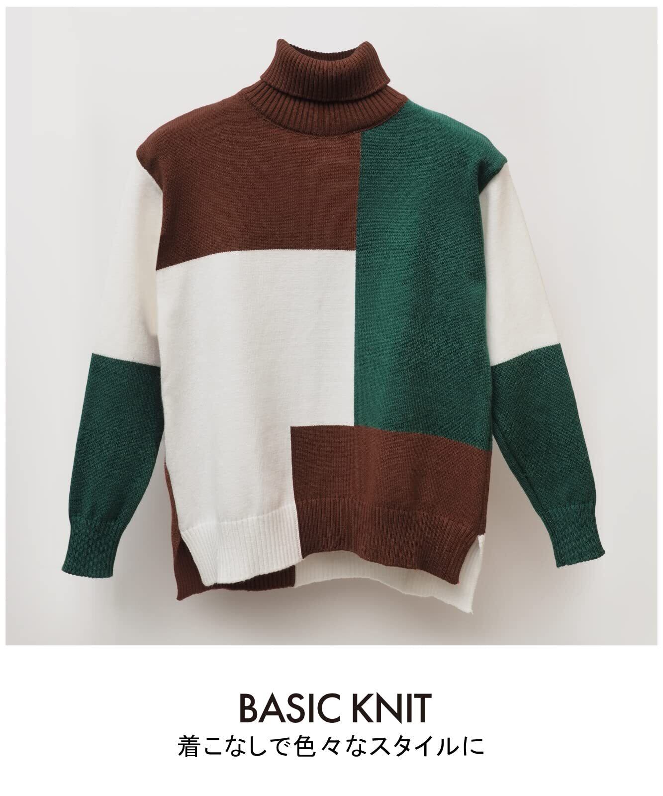 トレンドライクな配色が旬な着こなしを叶えてくれます。タートルネックのニットなので、とても暖かく着痩せ効果も。 長さは腰丈なので、ボトムにインして着てもアウトでもお洒落に着こなせます◎ スッキリと程よいフィット感で、もたつかず、ワンピースやオールインワンのインナーとして着てもgood◎ 重ね着にも重宝する嬉しい便利アイテムです。 締め付け感がなく、裾のサイドスリットもあるので、長時間着ていてもストレスを感じません。おしゃれも楽チンも手に入る万能ニットです。