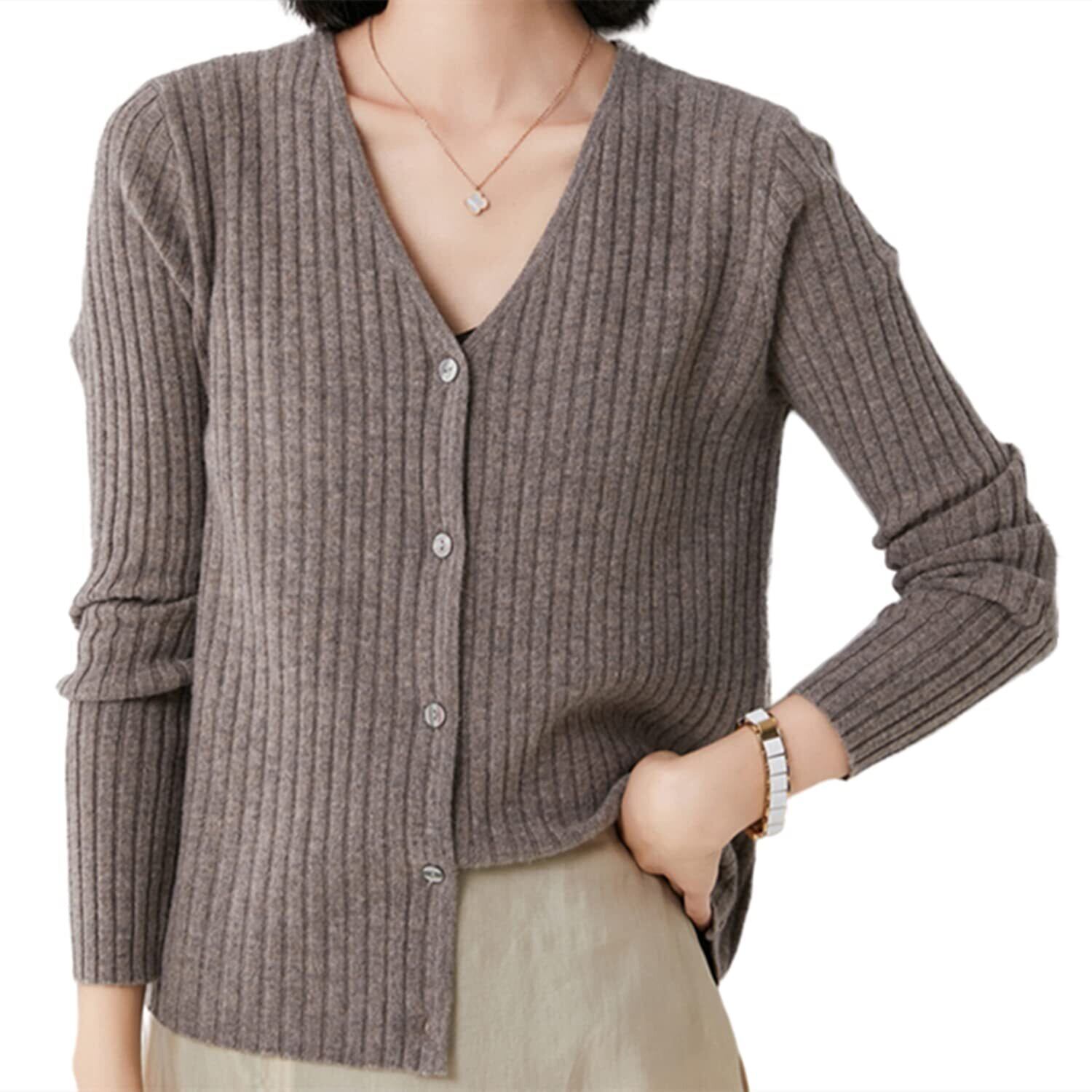 きれいなリブ編みのニットなのでテレワークやオフィス使いにもおすすめ