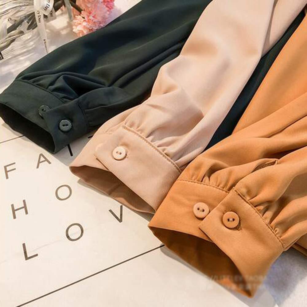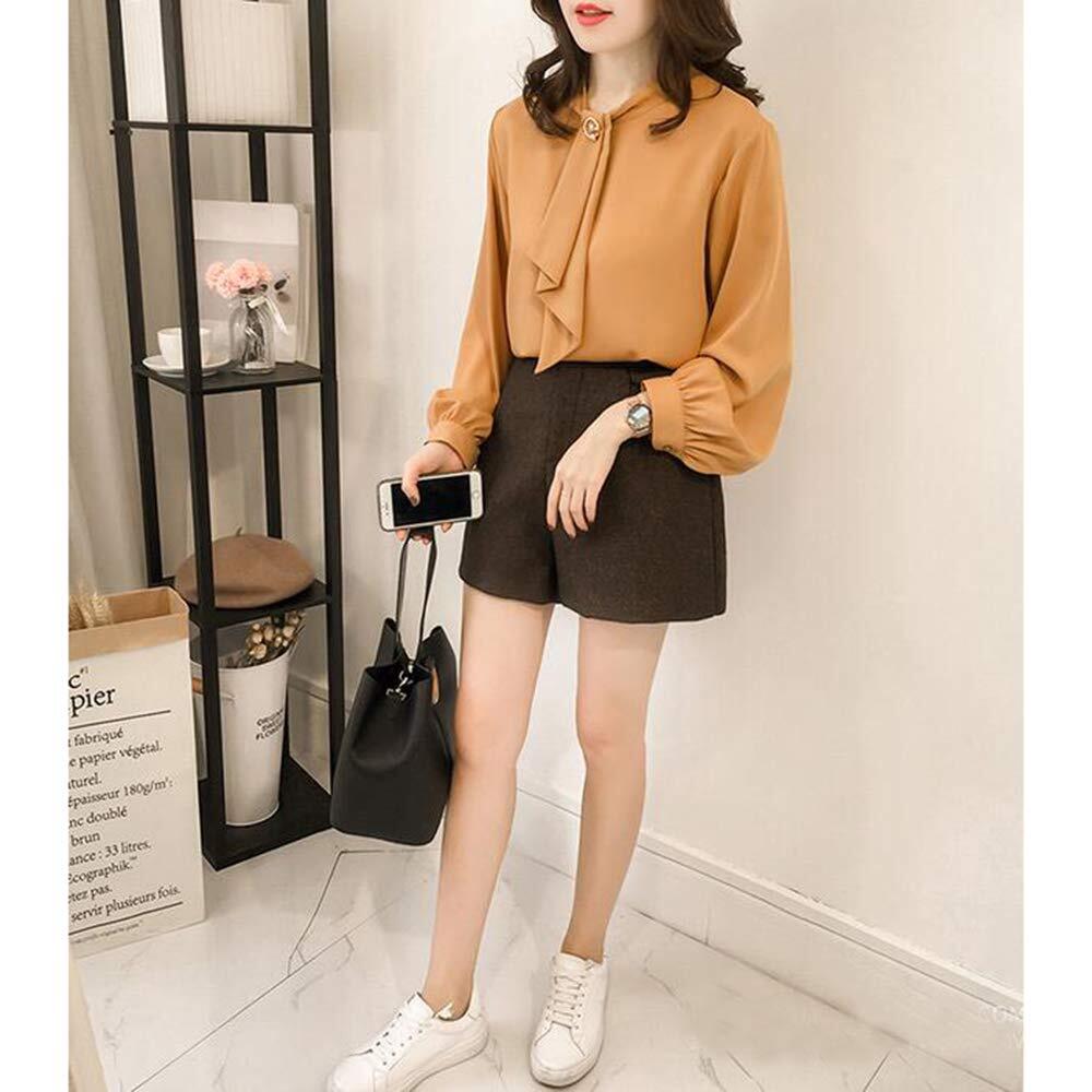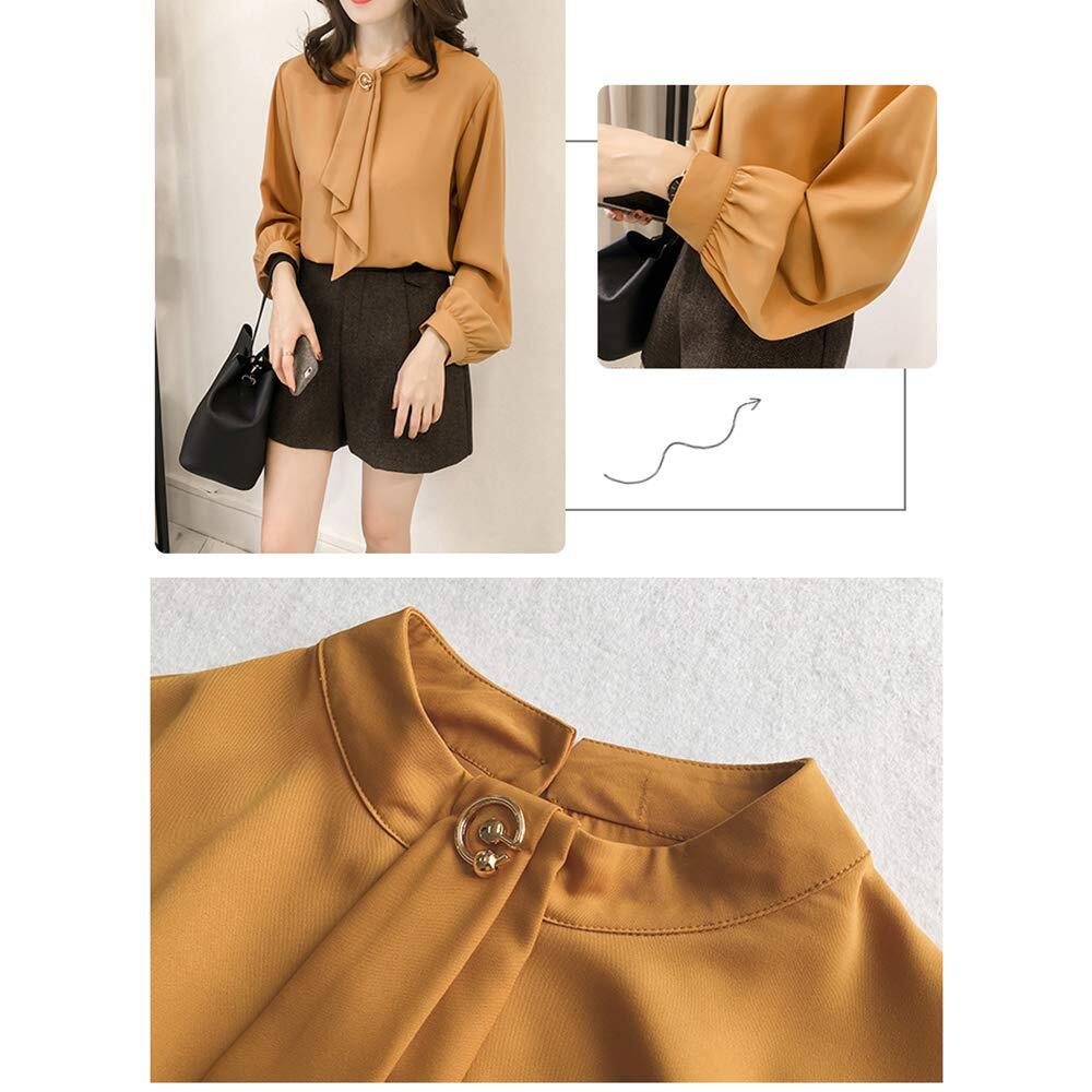 [JFashion] 胸元ボウタイブラウス レディーストップスシャツ ゆったり オフィス 無地 春夏 通勤 大きいサイズ
