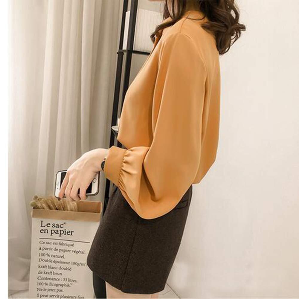 [JFashion] 胸元ボウタイブラウス レディーストップスシャツ ゆったり オフィス 無地 春夏 通勤 大きいサイズ