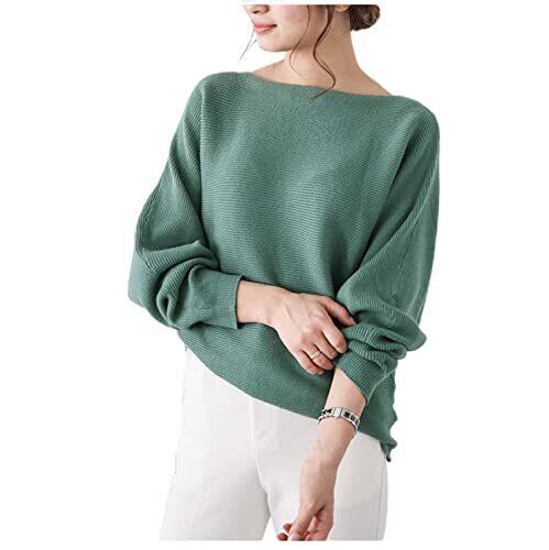 [AILITI] ドルマンニット セーター レディース ボートネック リブニット トップス 大人 おしゃれ 可愛い