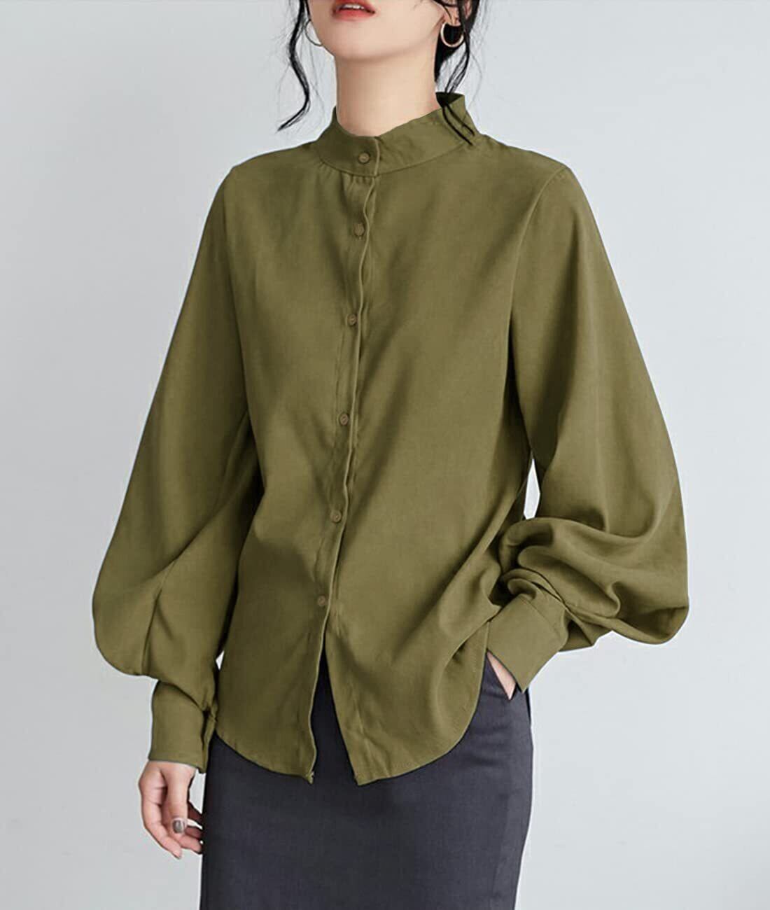 Sueeya シャツ レディース レトロ パフスリーブ 長袖 おしゃれ 着痩せ 体型カバー ゆったり トップス カジュアル 無地 普段着 通勤 フォーマル 20代30代40代 春 秋