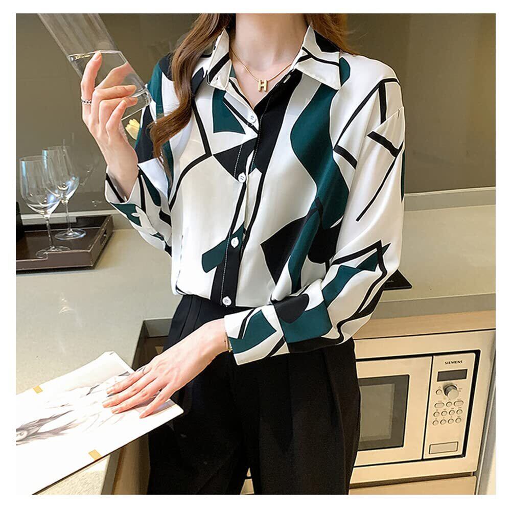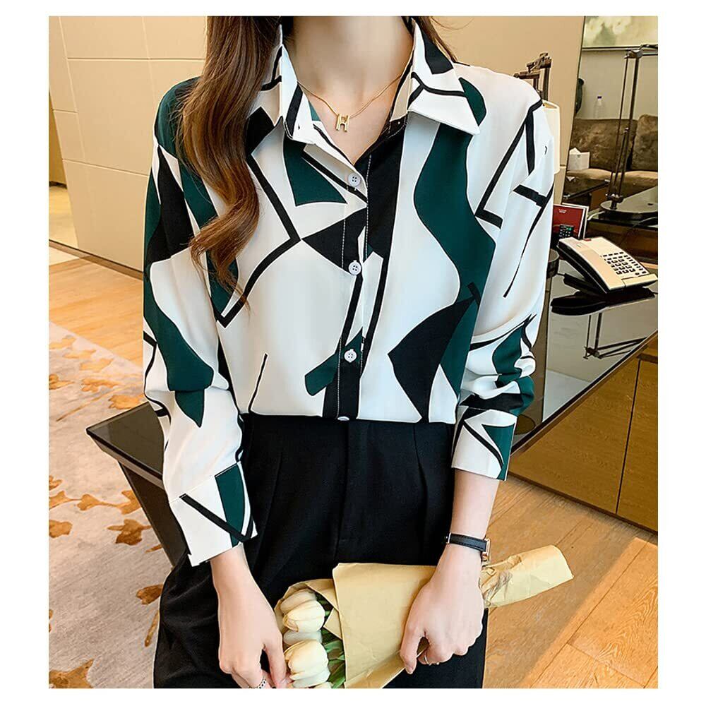 [NA] 長袖 ブラウス シャツ トップス エレガント おしゃれ 着痩せ 通勤 フォーマル 春 秋 レディース春物春 オフィス トップス 春物 レディースブラウス シャツ シフォン 長袖 カジュアル (M, グリーン)