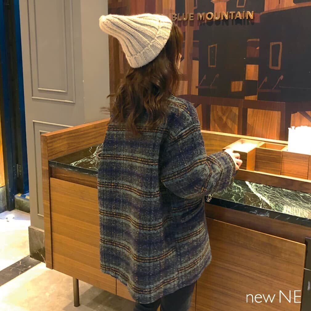 [newNE] マルチ チェック 柄 ショート テーラー コート S~XL レディース