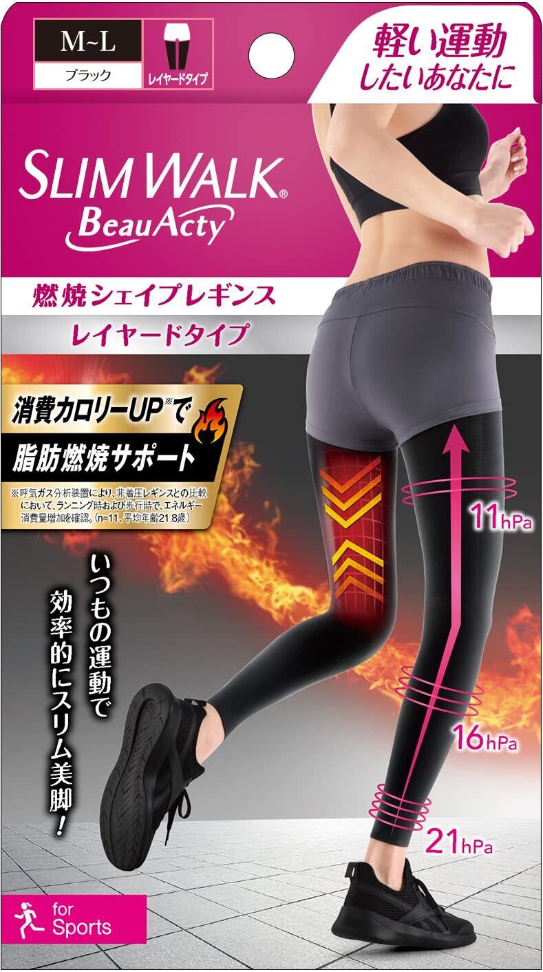 着圧レギンス スリムウォーク ビューアクティ 燃焼 シェイプ レギンス ブラック M-L 着圧 スポーツ ビューアクティー