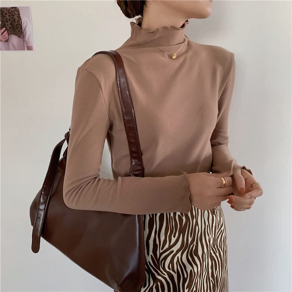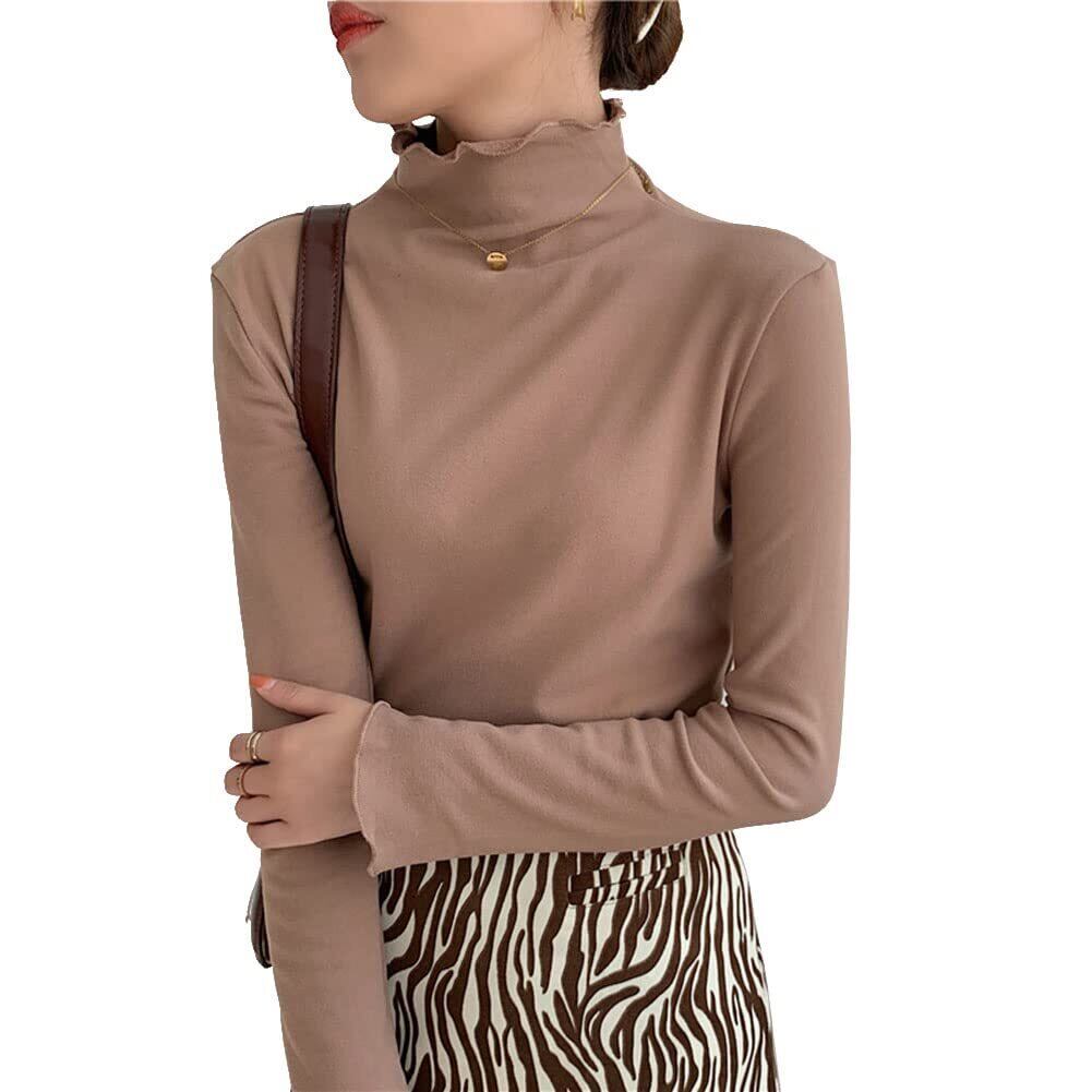 [拼衣坊] カットソー 秋冬 微起毛 プチハイネック レディース 長袖 インナー コーデ レイヤード カラバリー 秋冬 重ね着