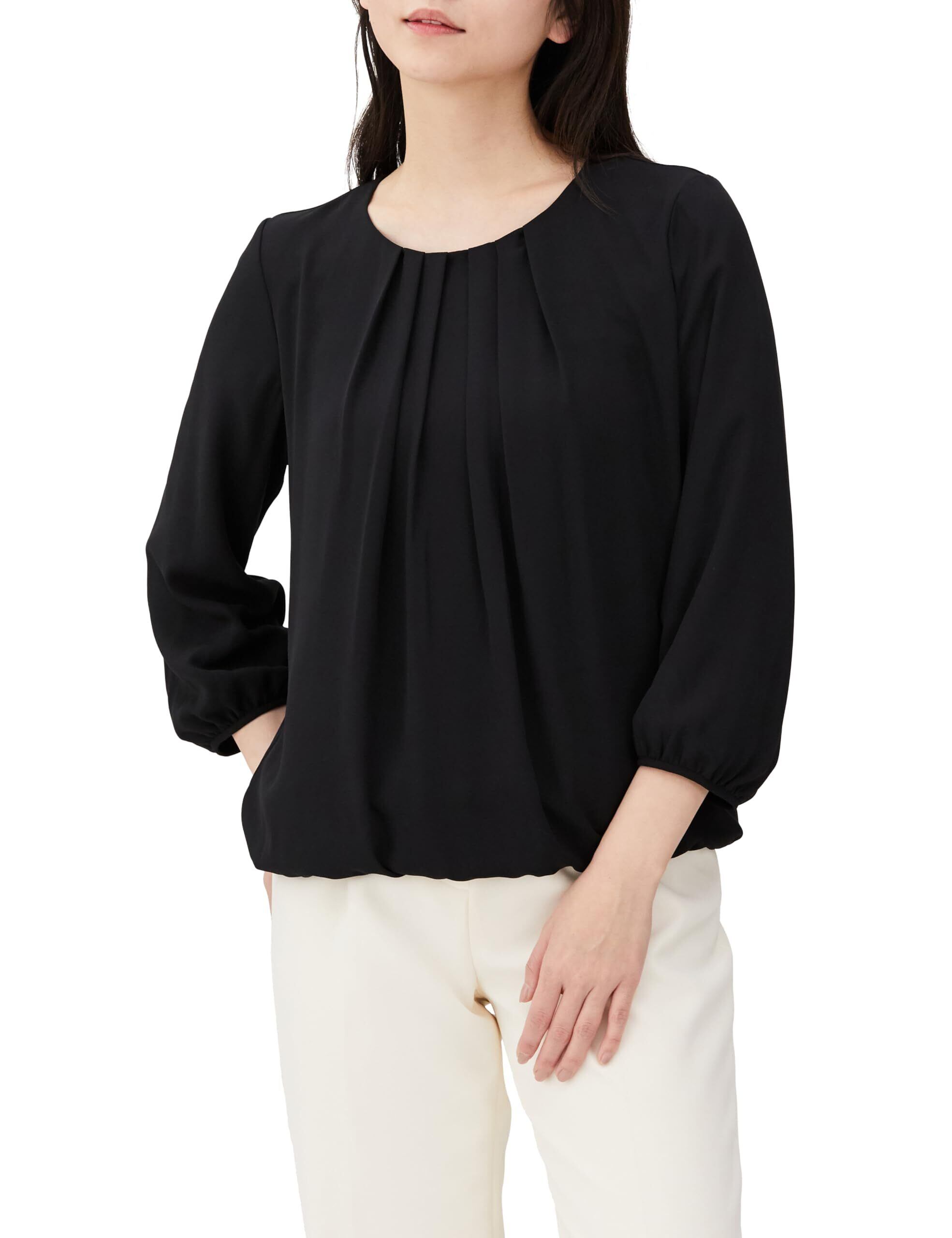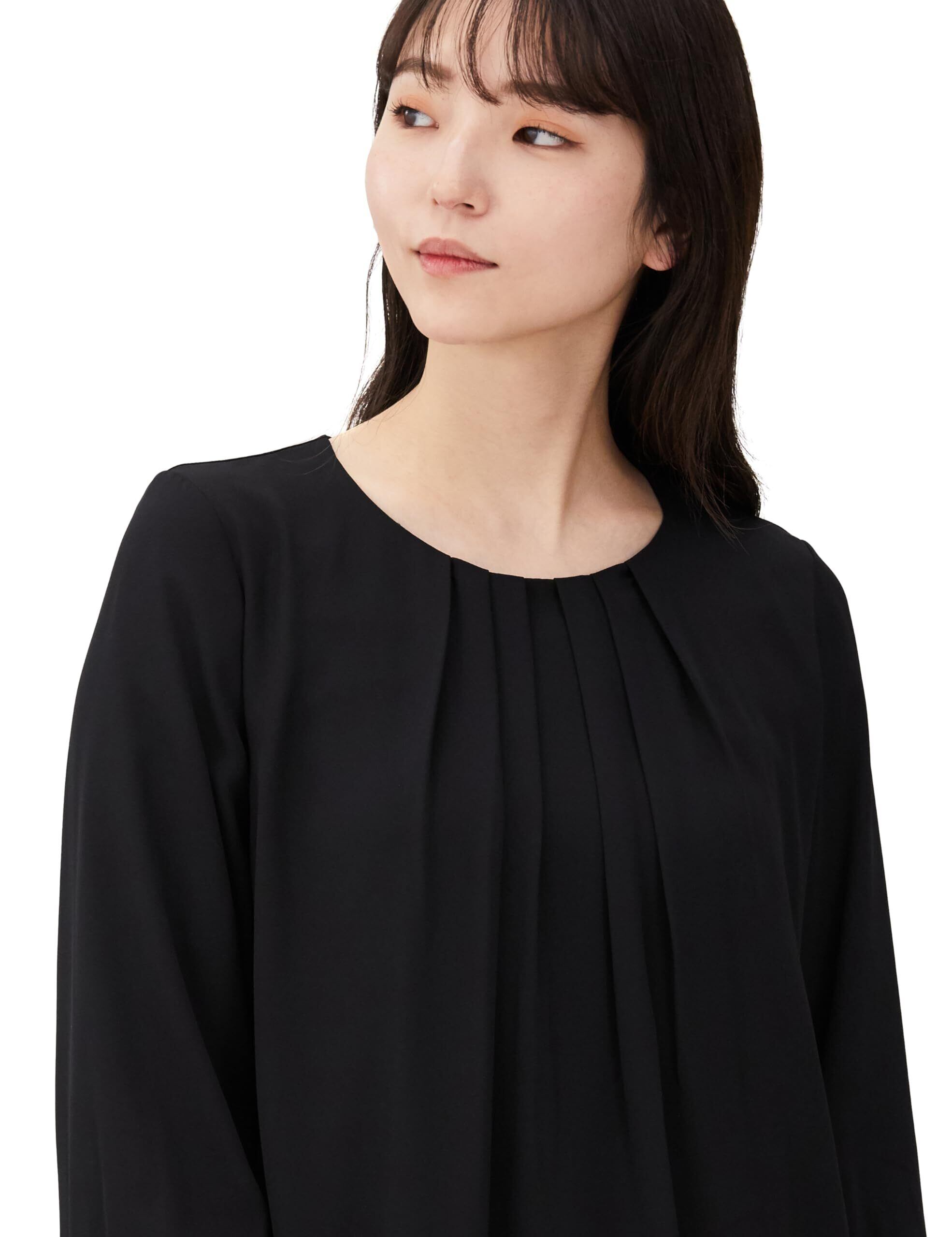 [アオキ] 長袖 ブラウス シフォン タック 防しわ 透けにくい 裏地付 定番 洗える 通勤 オフィス レディース
