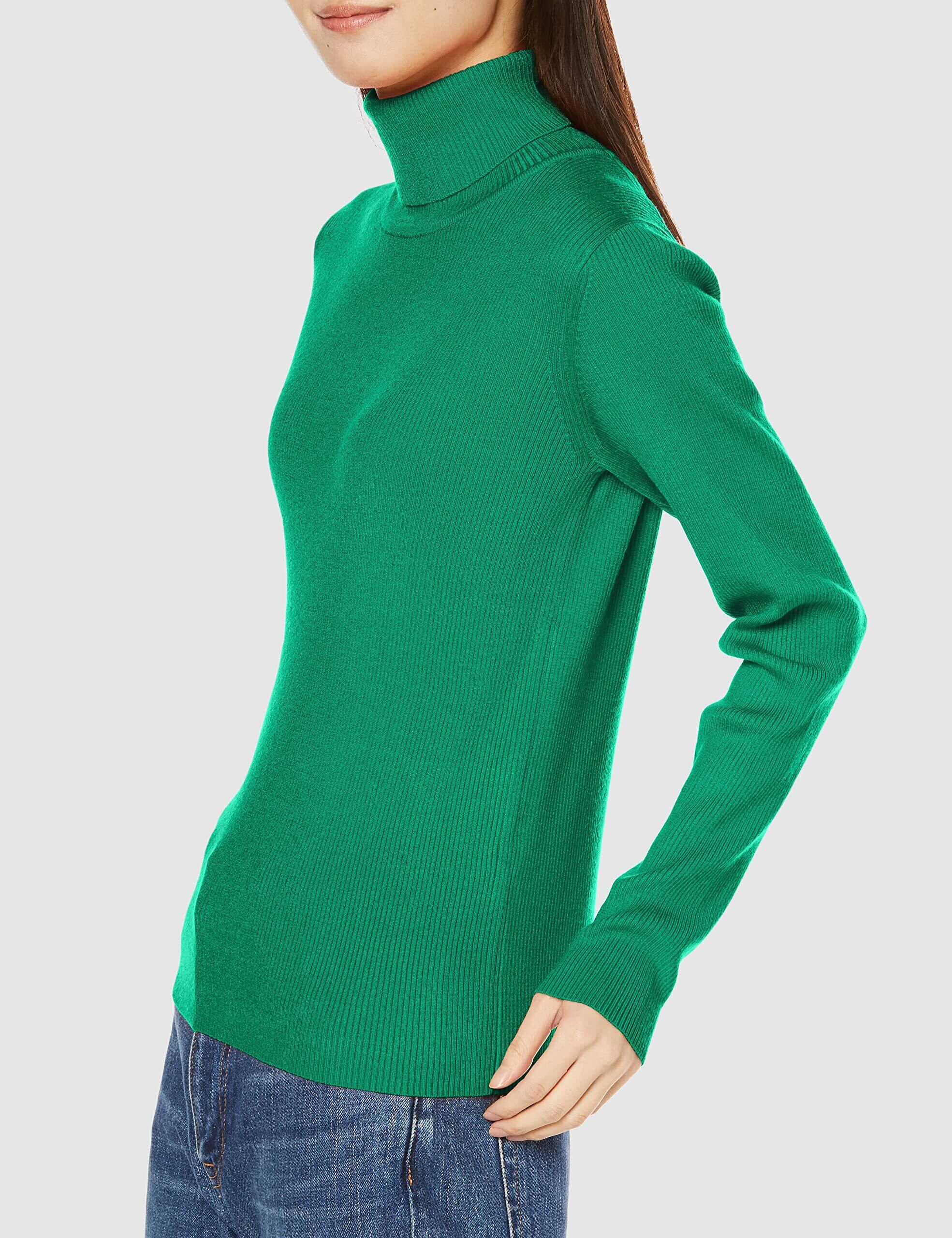 トレンドに左右されないシンプルデザイン。一枚あると便利なタートルニット。