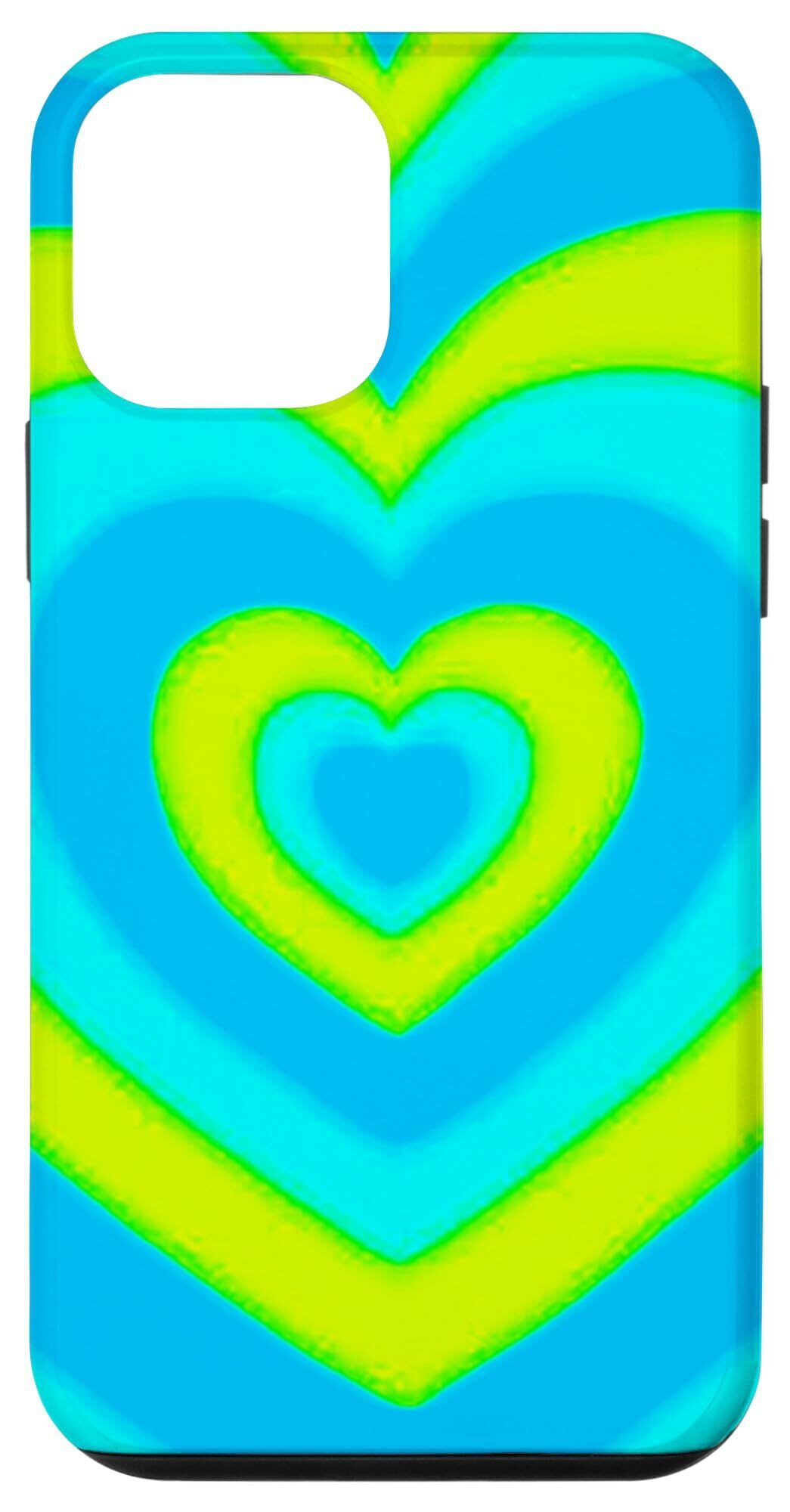 iPhone 12 mini レトロ Y2K ストライプ シンスウェーブ ハート グリーン イエロー エステティック スマホケース