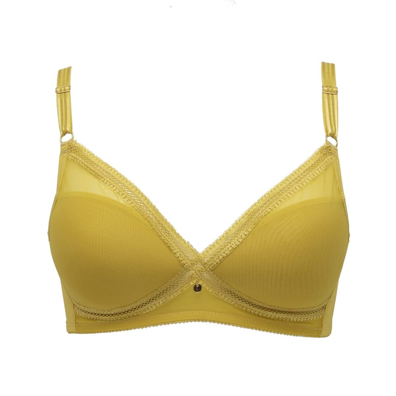 【クロスメッシュブラ】 カップの周りはクロスになったメッシュテープ仕様で、通気性が良く、ムレにくい。さらりとした着心地ラクなノンワイヤーブラです。