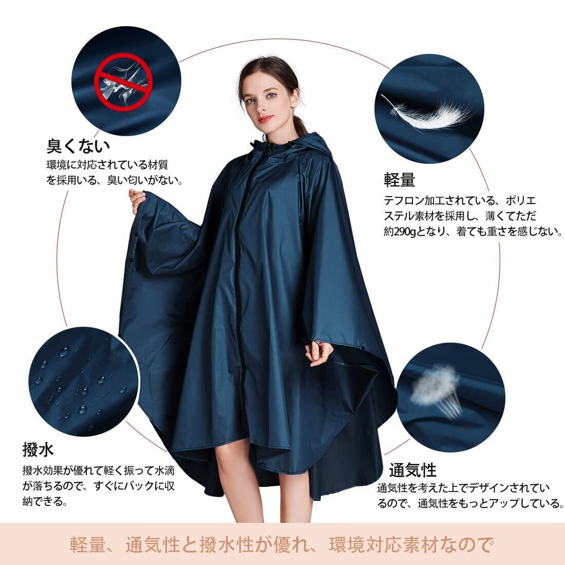 【色んな場合に適用】:自転車を乗る時や、ショッピング、通勤、通学、散歩、旅行、スポーツマッチを楽しむ時など色んな場合で利用できます。大雨でも心配なく自由に活動できます。伝統的なレインコートと違い、これはただのレインコートだけでなく、オシャレなデザインで旅行の時はコートとしても使えます。リュックを付いても快適に着られます、使い心地が非常にいいです。