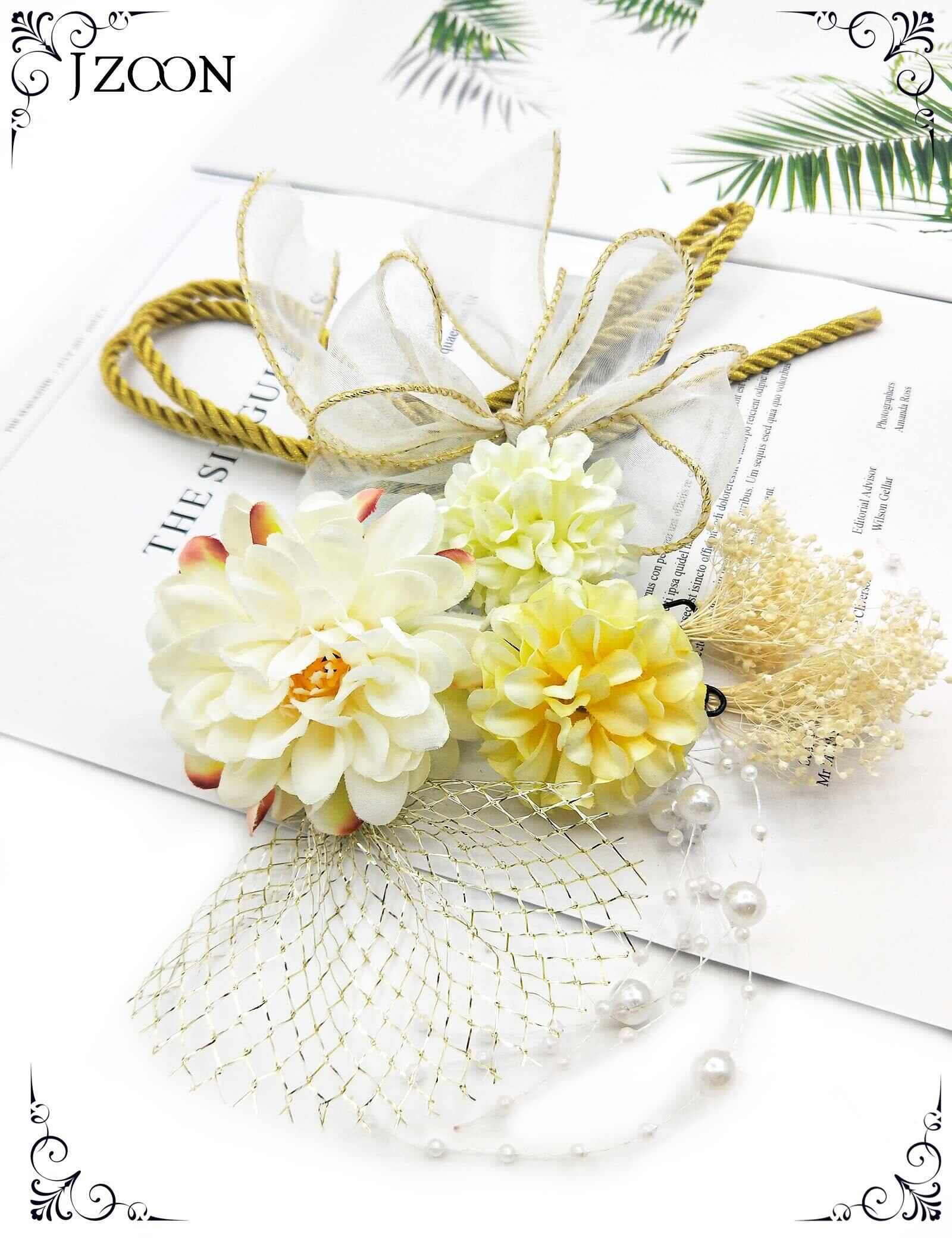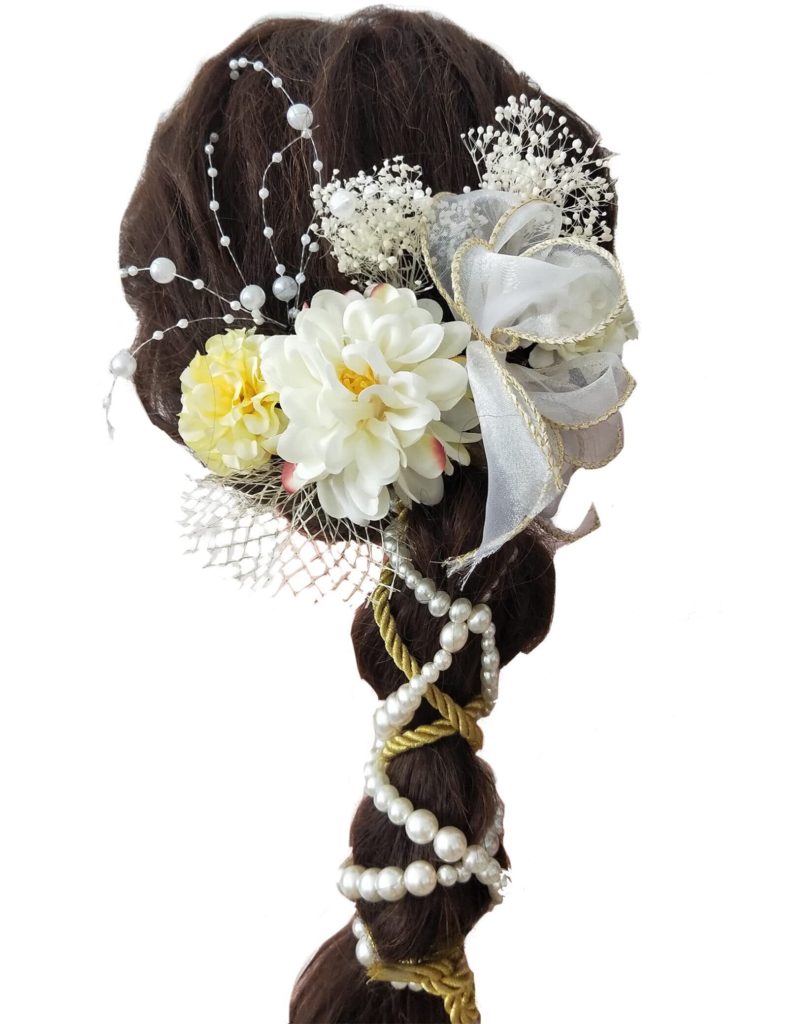 [JZOON] ドライフラワー 造花 髪飾り 花飾り 紐アレンジ ロープアレンジ 和装 浴衣 着物 振袖 袴 ヘッドドレス ウエディング 結婚式 ブライダル ヘッドアクセサリー 花 花嫁 和風 卒業式 成人式 七五三