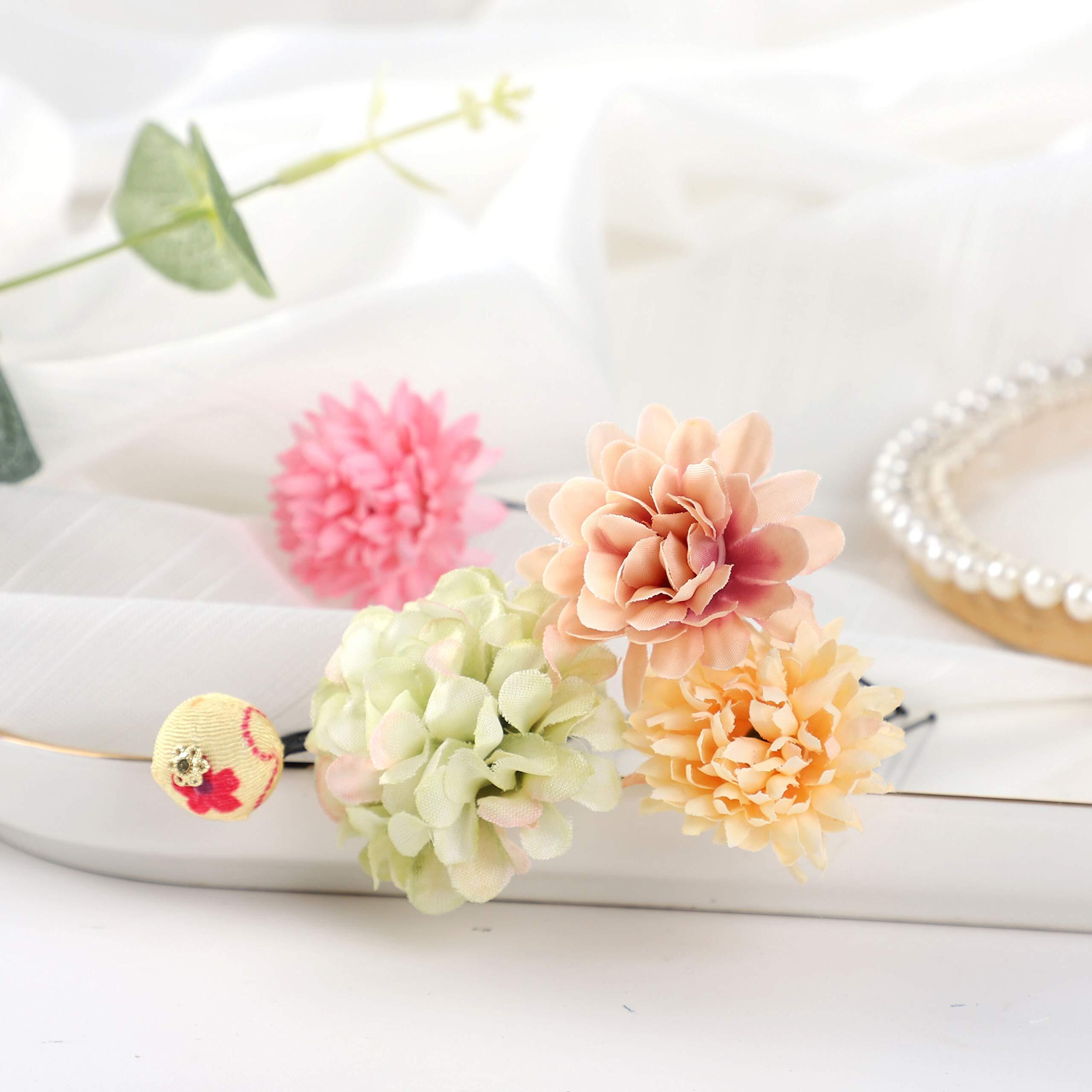 繊細な和風髪飾りの9点セットです。花の色合いが素敵で存在感があります。Uピンの先が丸くなっているので頭皮に優しい。