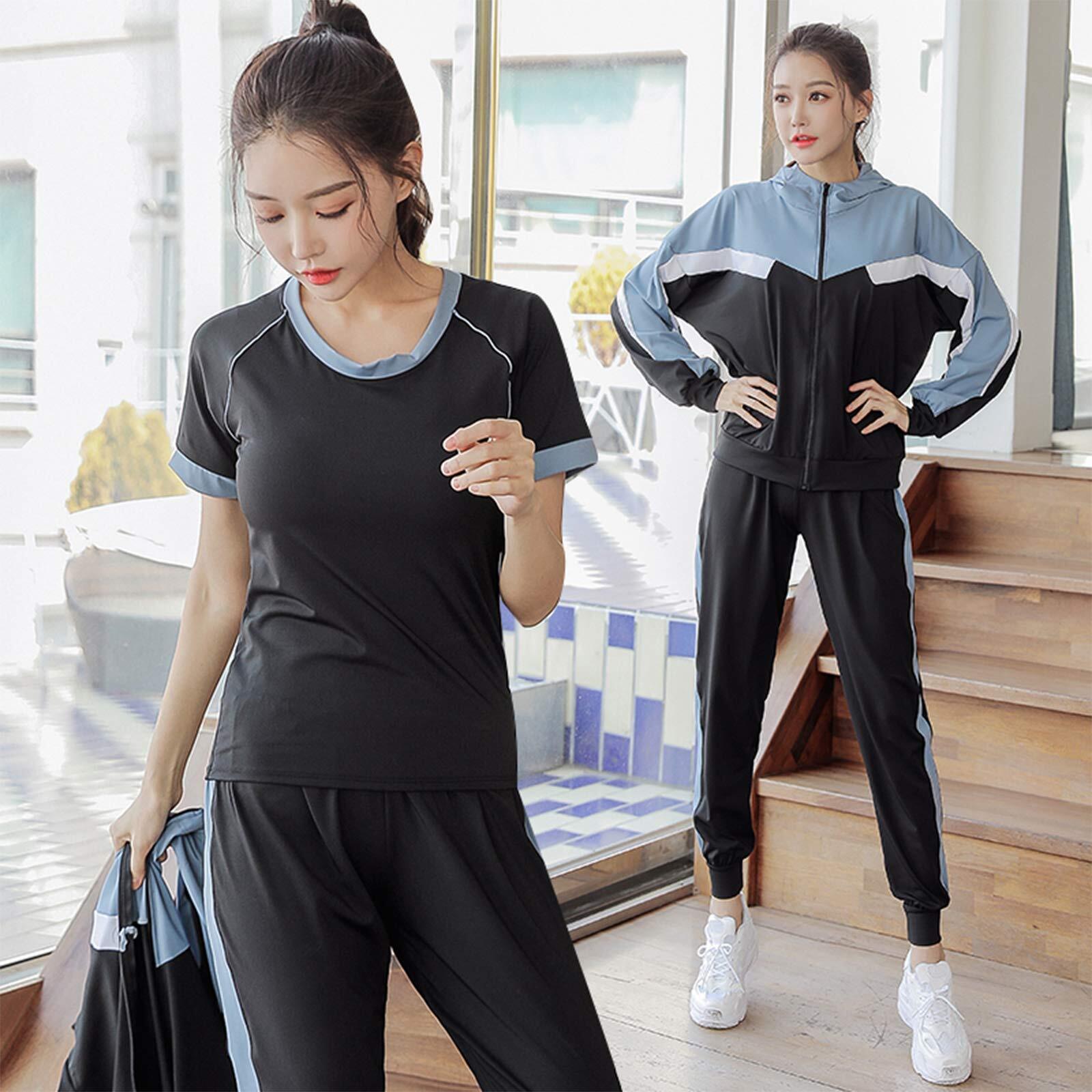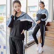 【4点セット】スポーツブラジャー&Tシャツ&スポーツパーカー&ズボン 全て揃った上下4点セットのスポーツウエア!自分の好みに合わせて様々な組み合わせることができる。春から冬までロングシーズンお使いいただける。