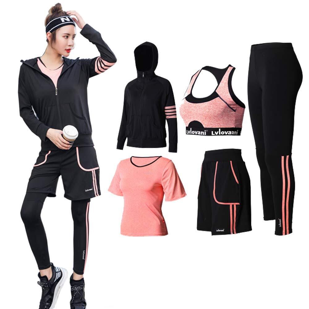 セット内容 :ジャージトップス、半袖Tシャツ、レギンスパンツ、ショ-トパンツ、スポーツブラ上下5点スポーツウェアセット。春から冬まで全年お使いいただけるヨガウェア。