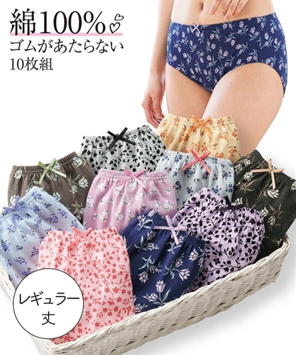 [ニッセン] ショーツ レギュラー セット 10枚組 綿100% ゴムが肌側にあたらない 大きいサイズ レディース