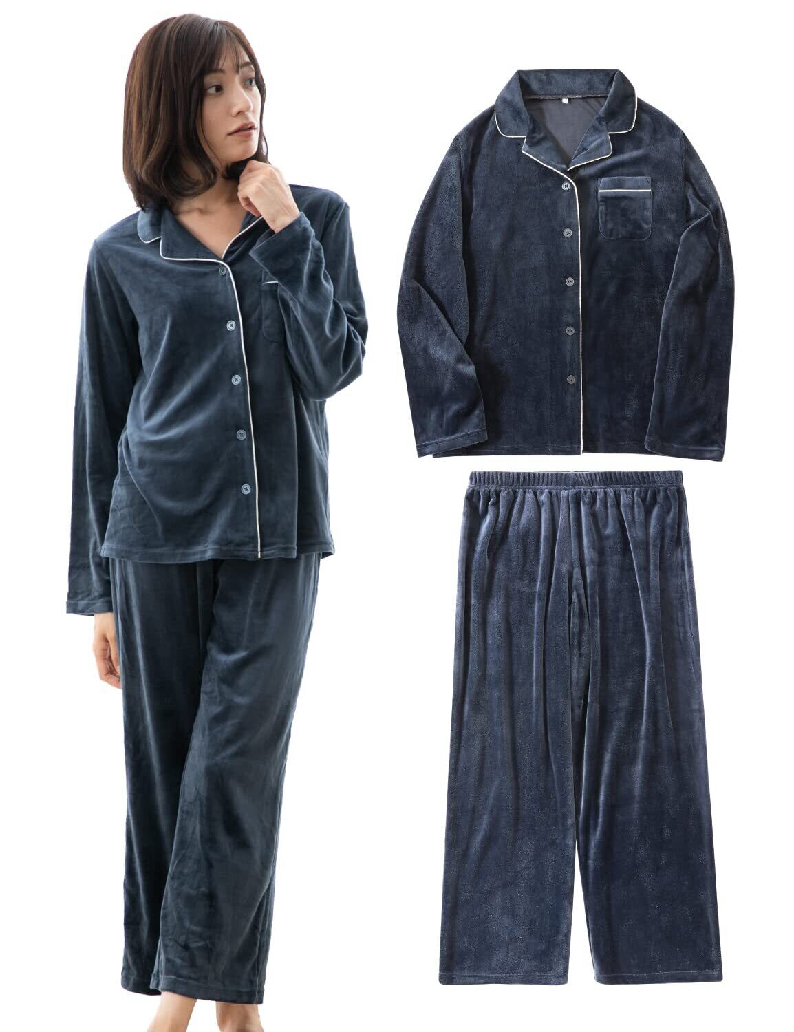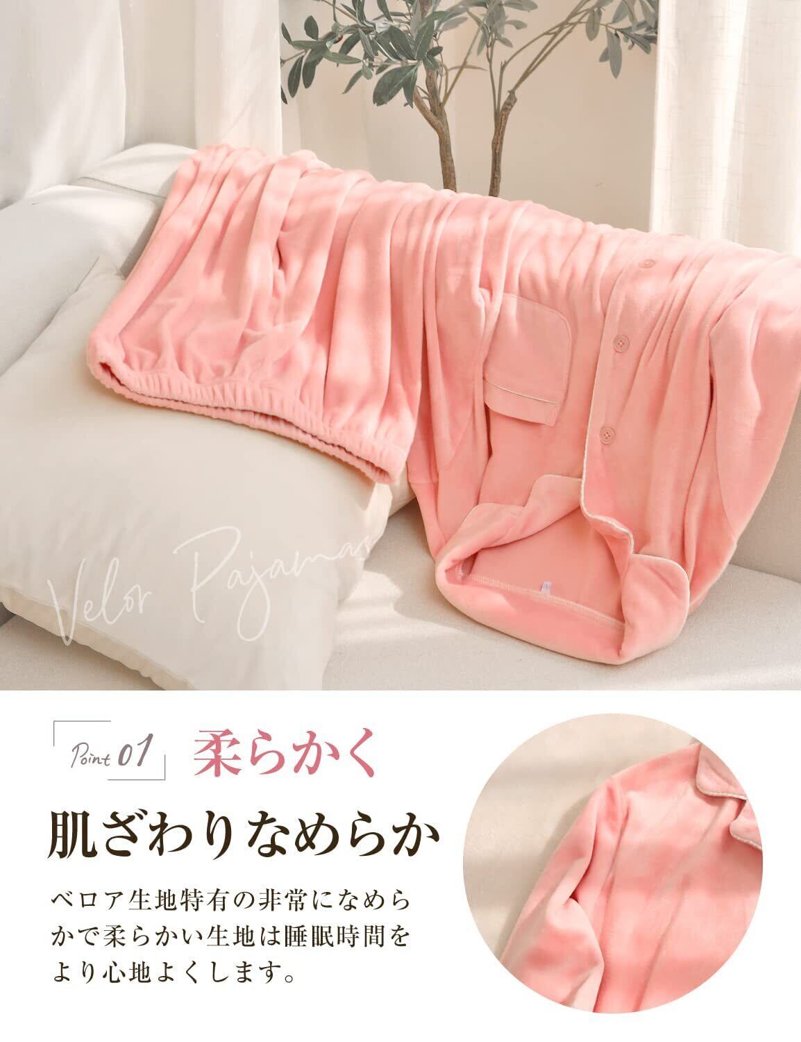 【ストレスフリーな着心地】伸縮性があるベロアを使用しているため着疲れすることがありません。ボトムにはウェストゴムを使用しており、ストレスを感じることなく着ていただけるレディースパジャマになっております。ゆっくりおうちで過ごす時間が増えている今だからこそ、おしゃれなパジャマを着てラクに過ごしてみてはいかがでしょうか。プレゼントにも喜ばれるクオリティ。前ボタン仕様で入院着としても最適です。