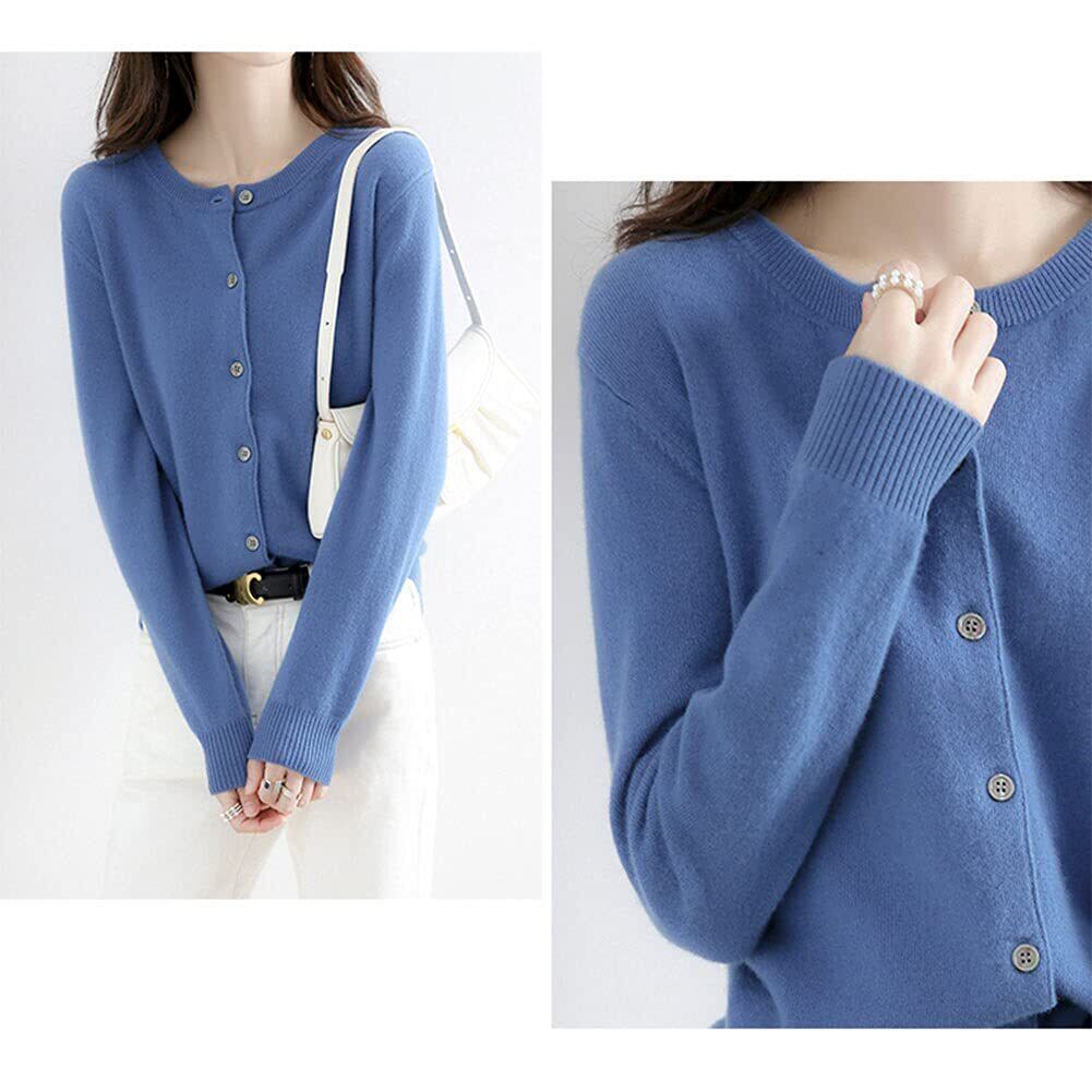 zuevi カーディガン レディース クルーネック セーター ニット 長袖 無地 春秋冬