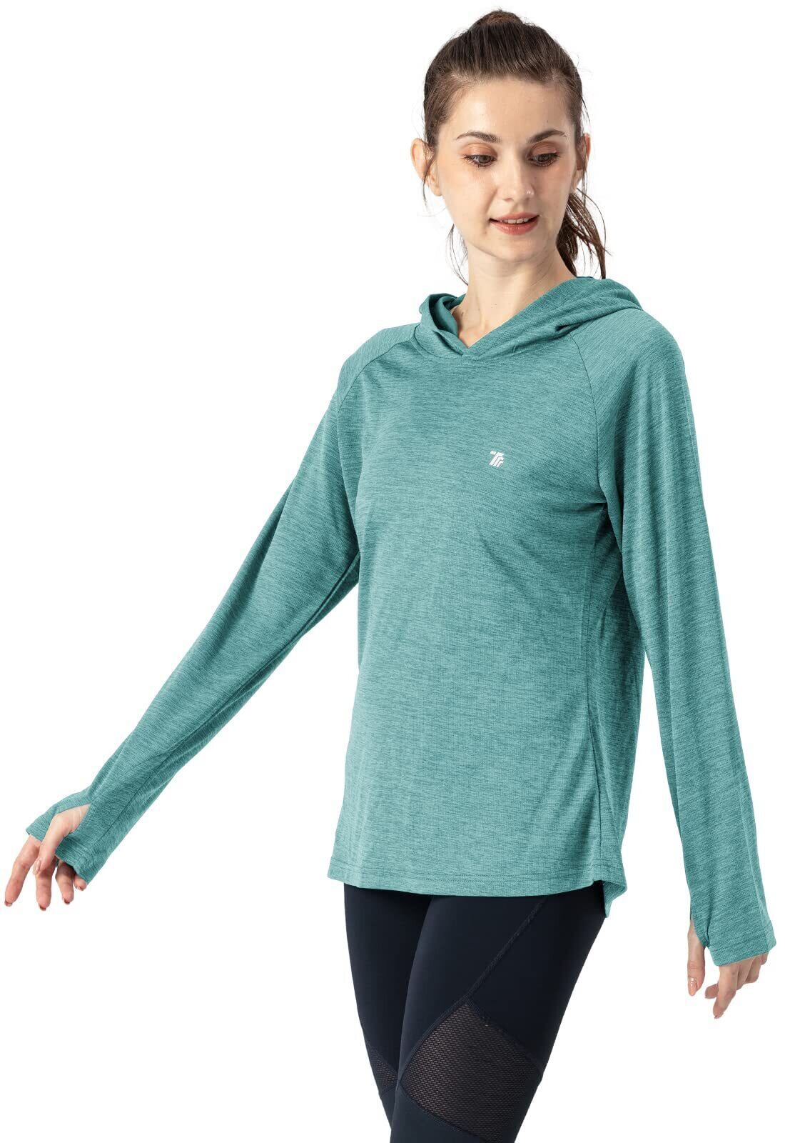 [YSENTO] レディース スポーツウェア 長袖tシャツ 指穴 UPF50+ ゴルフ テニスウェア 山登り スポーツ tシャツ トレーニングウェア フード付き ロングtシャツ 吸汗速乾