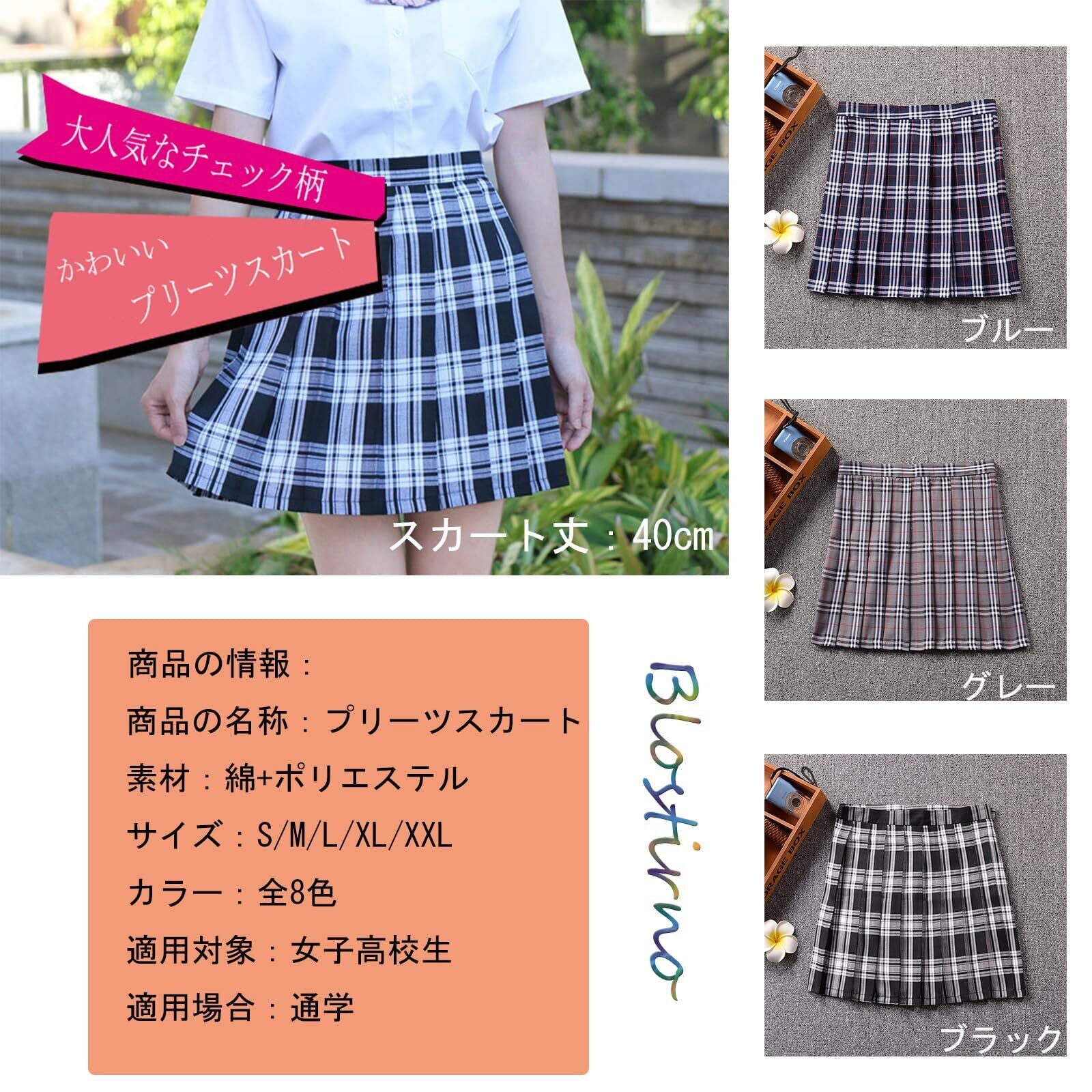 [Blostirno] プリーツスカート チェック柄 ミニ スクールスカート ハイウェスト ひざ丈 制服 女子高校生
