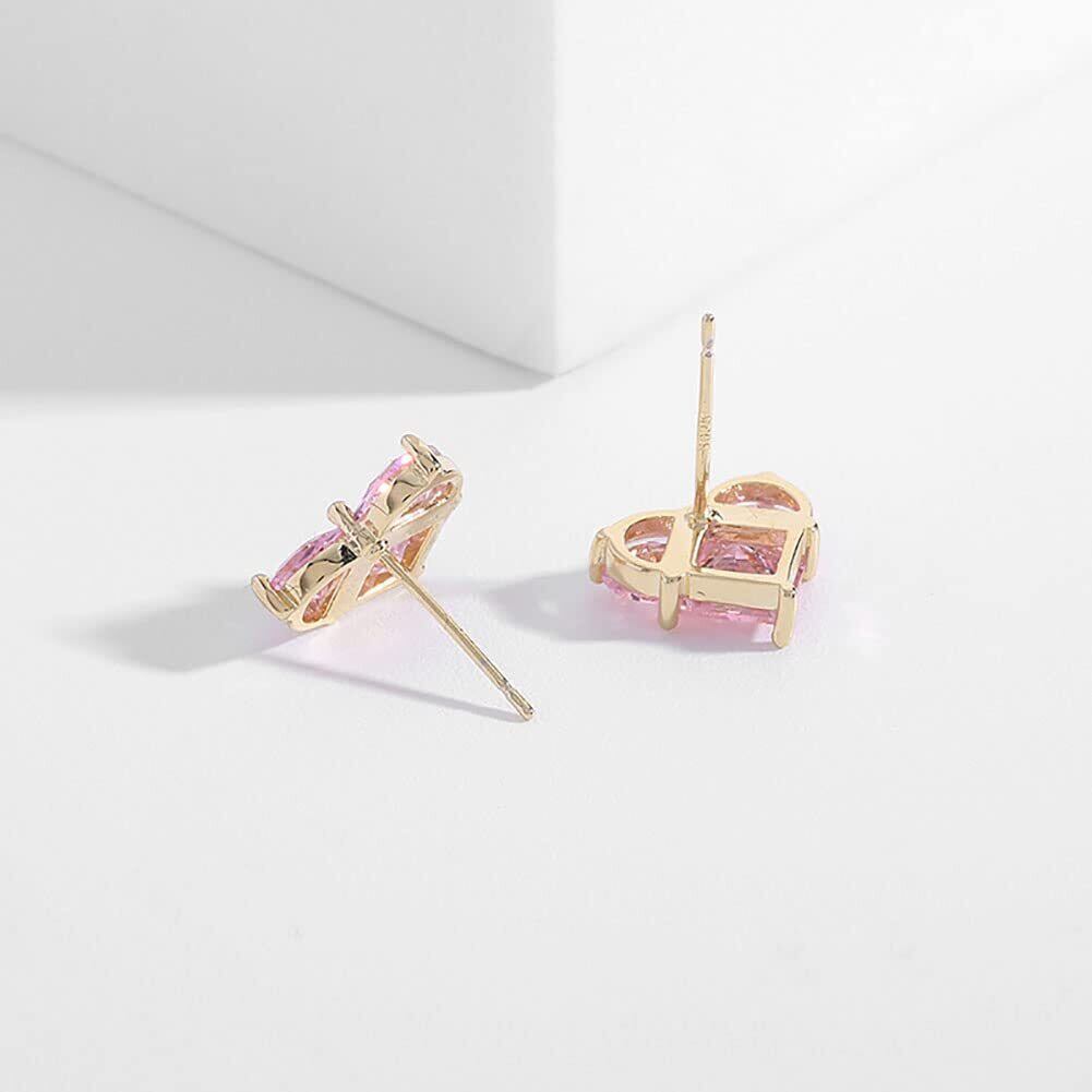 【商品詳細】18k金メッキ ピンク キュービックジルコニア ハート スモールスタッドピアス。ピアス サイズ:1.2cm。付属品:yoursfs 専用ケース、ジュエリーメンテナンスマニュアル。