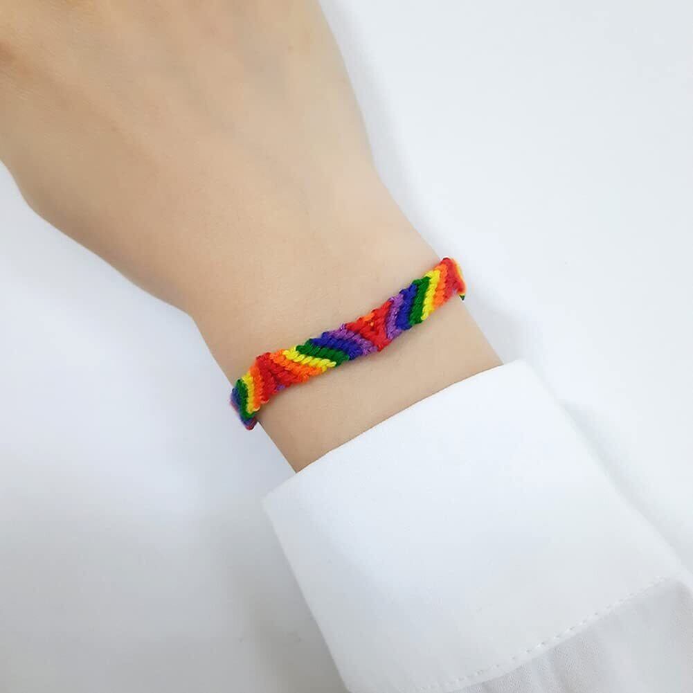 ブレスレット メンズ レディース カラー ナイロンブレスレット カラフル 紐チェーン 同性愛 編み込み 虹色 調整可能 彼女 誕生日 記念日 パーティー プレゼント アクセサリー