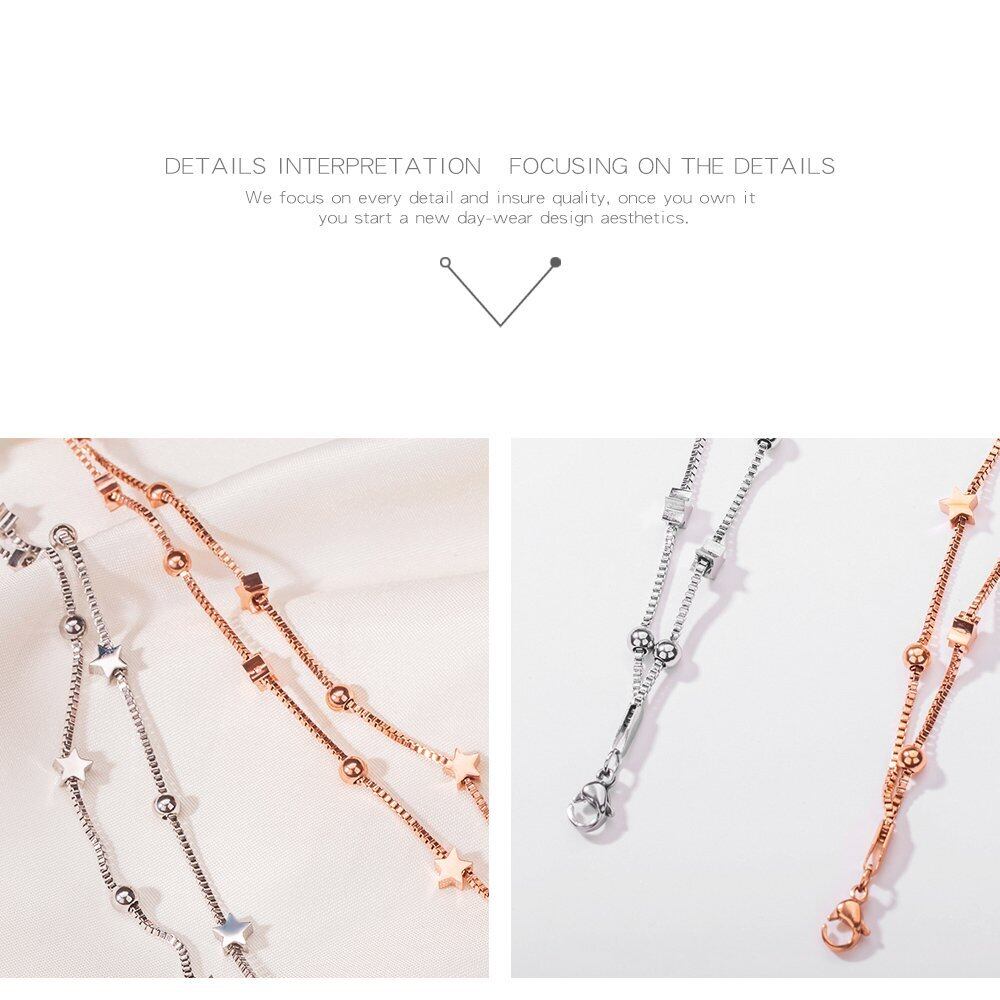 ブランド レディース ブレスレット シルバー チタン スター 星 チェーン腕輪 2連 細い サイズ調節可能 ハワイアンジュエリー