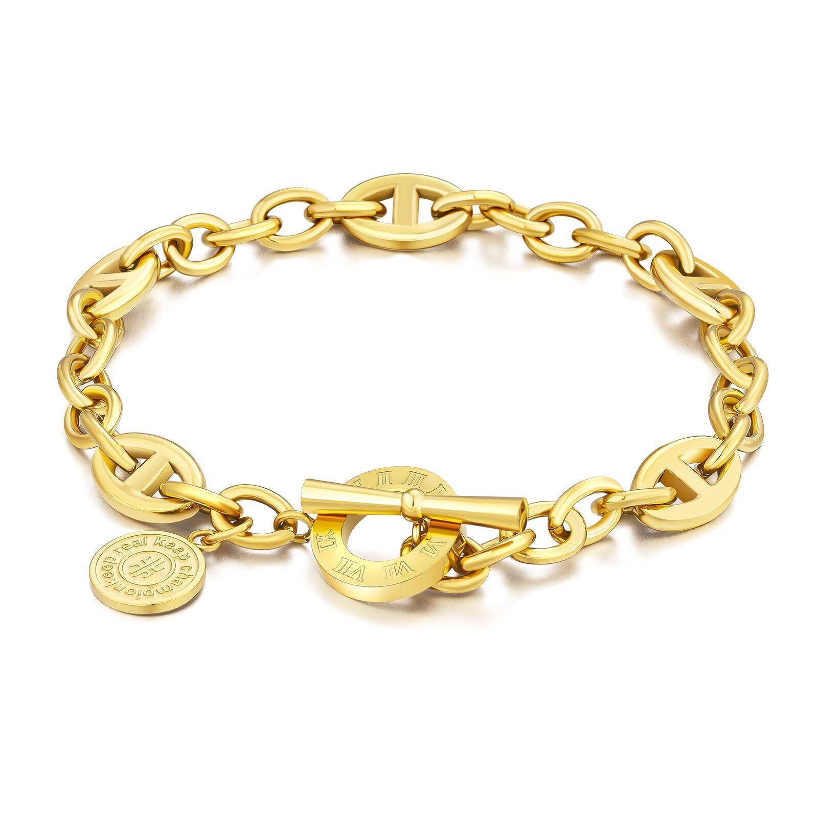 KRKC&CO ブレスレット レディース アズキ/アンカーチェーン マンテルブレスレット 8mm サージカルステンレス K14金メッキ 金属アレルギー対応 男女兼用 人気 アクセサリー プレゼント