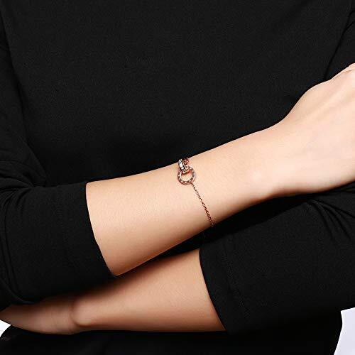 ブランド 人気ジュエリー ブレスレット レディース 18K チタン ピンクゴールド 2連リング ローマ数字刻印 ジルコニア 二連 あずきチェーン レディースブレスレット ハワイアン オールシーズン ギフト