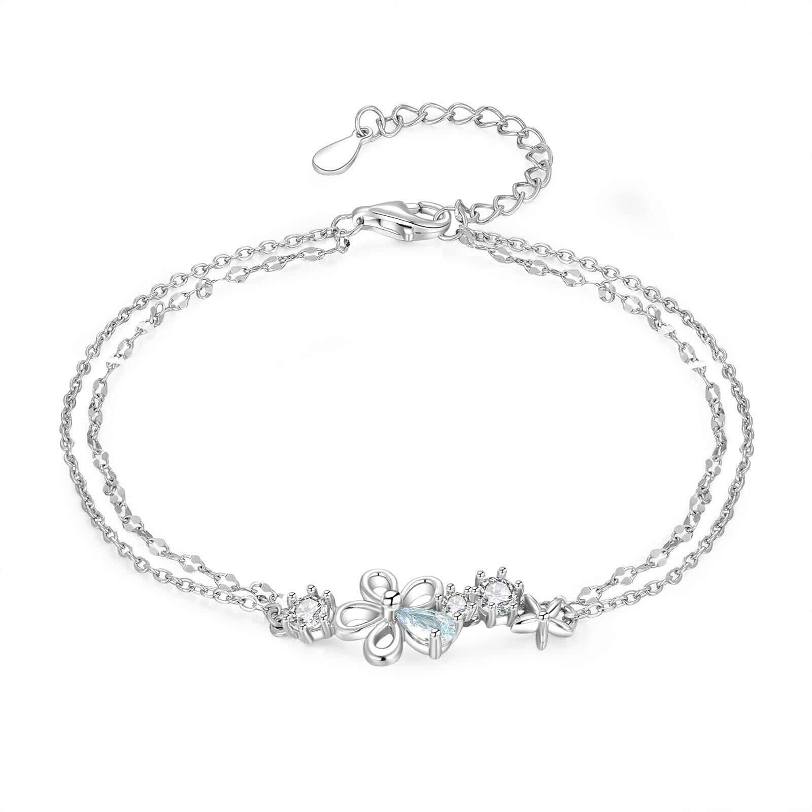 Free bird ブレスレット レディース 桜 ジルコニア 2連バングル チェーン シルバー 925 金属アレルギー対応 腕輪 長さ調整可能 誕生日プレゼント女性 細い 人気 クリスマス