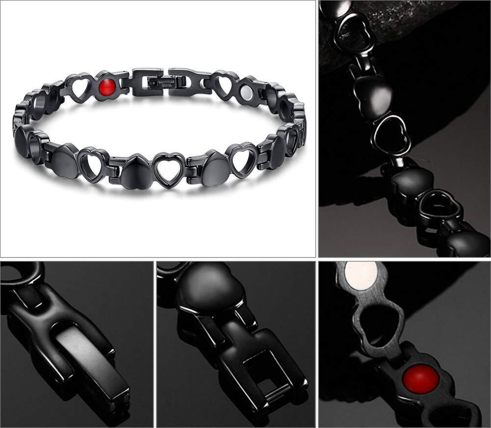 【優れたハートデザイン】 シンプルで着用しやすいデザイン、派手過ぎず、地味過ぎない、ちょうど良い存在感が魅力のステンレス磁気ブレスレットです。普段使いでもフォーマルでも大活躍する、人気のレディースゲルマニウムブレスレットです。