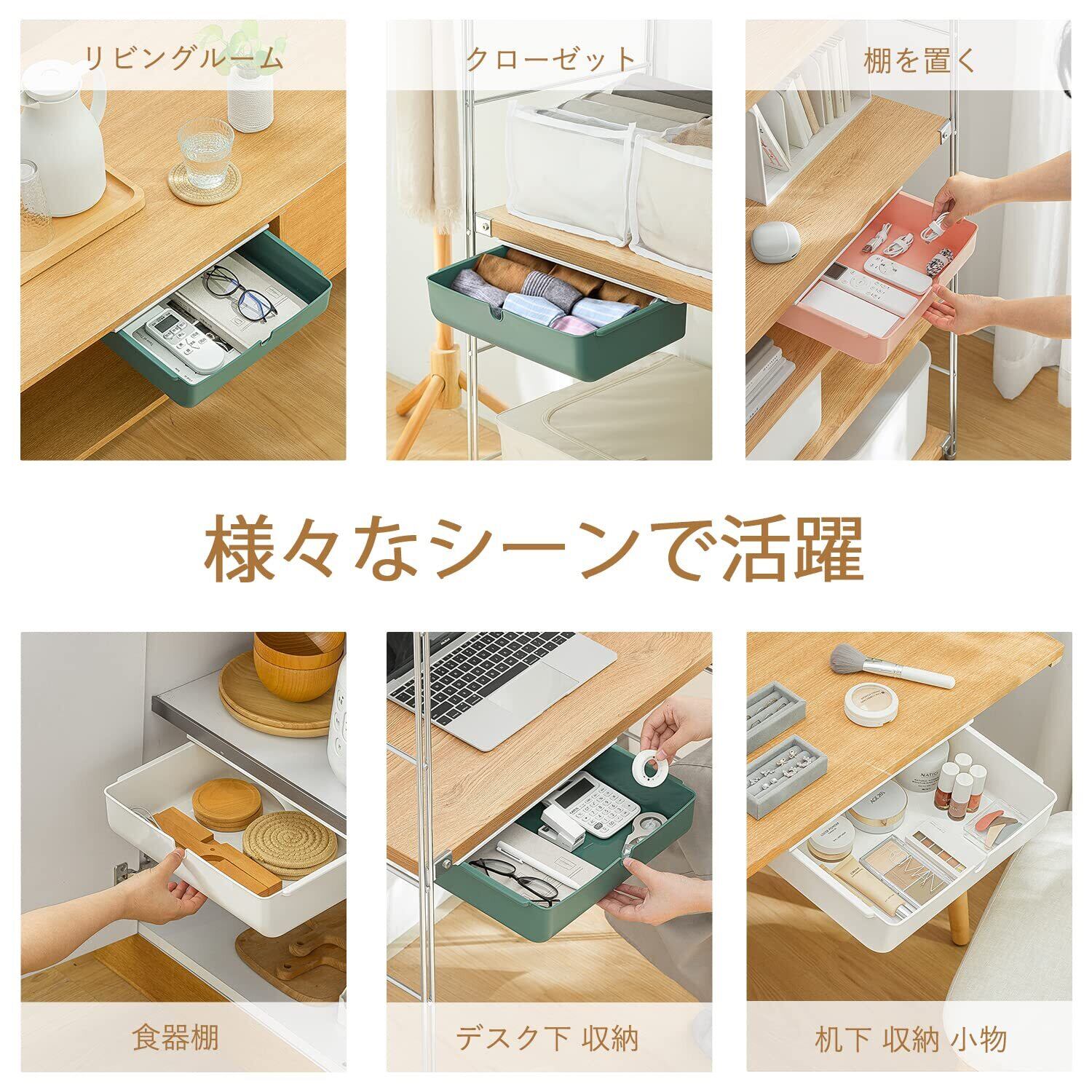 Toski 机下 収納 引き出し 大きい 奥行23.5×幅33×高さ8.5cm デスク下 後付け引き出し スペース活用 スライドトレー 大容量 強力粘着 取り付け 隠し引き出し テーブル下収納 小物整理 リモコン 文房具 便利 グリーン