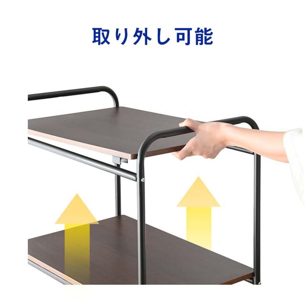 【キャスター付き】便利なキャスターが付いているので、片手で引っ張るだけで出し入れできる。ディバイダーを取り付けたことで、カートを前後に動かしても物が落ちない。メタルラックは引き出し式で一番上の段が取り外せるようになっています